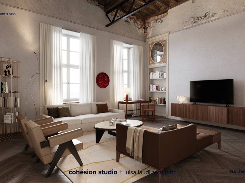Le prime quattro immagini rappresentano render di progetto, pensati per valorizzare le potenzialità dellimmobile, realizzati per la casa dellArch. Maria Luisa Laudi.
