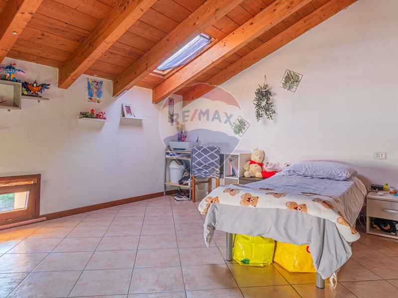 L'immobile si trova in posizione comoda a tutti i servizi offerti dal paese, ed è l'ideale per chi cerca un contesto sereno ma ben collegato. L'appartamento si apre su un luminoso soggiorno con angolo cottura e affaccio diretto sul cortile interno, prosegue con un corridoio che conduce a una sala relax (utilizzabile anche come camera da letto) e a un bagno. Attraverso una scala interna si accede al piano mansardato, caratterizzato da splendide travi in legno a vista, dove si trovano due ulteriori camere da letto e un secondo bagno. Completano la proprietà un comodo garage e la disponibilità di posti auto liberi nel cortile condominiale. Un'abitazione dal calore autentico, perfetta per chi ama le atmosfere rustiche senza rinunciare alla praticità.