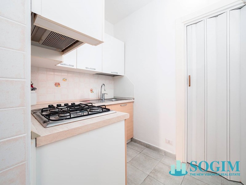 Proseguendo verso l'antibagno, si colloca un piccolo angolo cottura sapientemente separato dal soggiorno e il bagno .