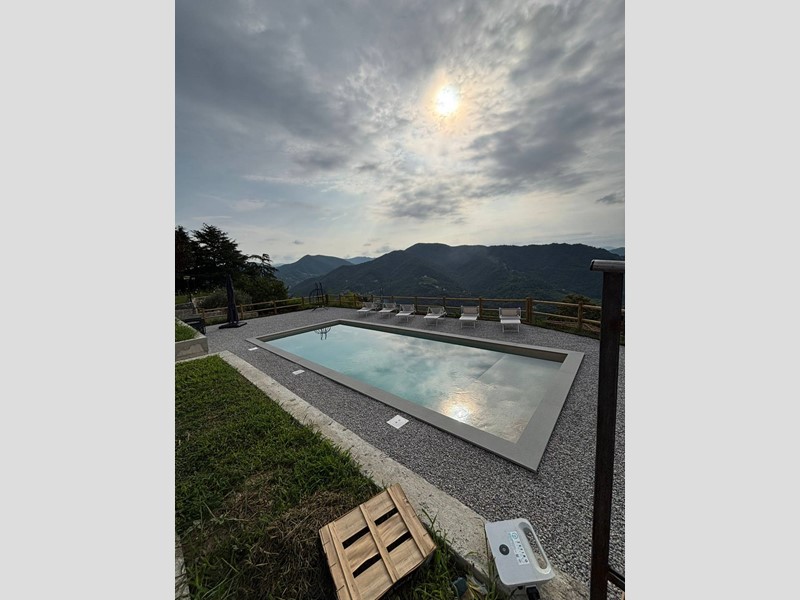Al piano primo si trovano 8 ampi locali, tra cui una luminosa cucina a vista e un ampio soggiorno, entrambi esposti a sud e dotati di ampie finestre che offrono una splendida vista sul terrazzo, parco e piscina.