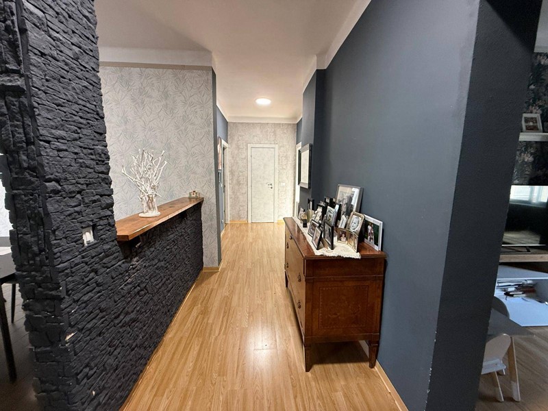 Lingresso si apre su un disimpegno che conduce alla luminosa sala da pranzo con cucinino e al soggiorno separato, ideale come zona relax. La parte notte comprende tre camere da letto di generose dimensioni, un bagno finestrato, oltre a un ampio ripostiglio con possibilità di realizzare una pratica lavanderia. Completano la proprietà due balconi e la cantina.