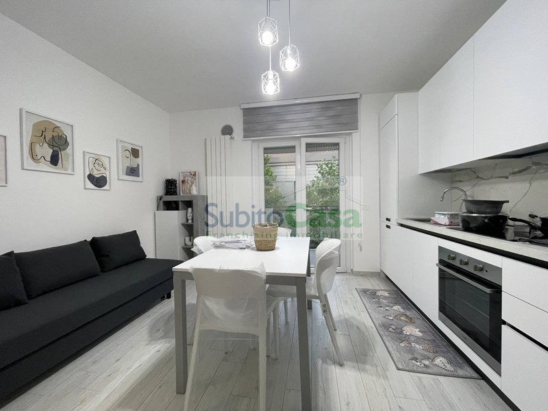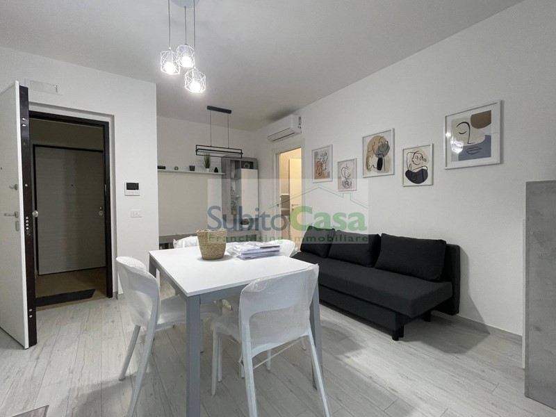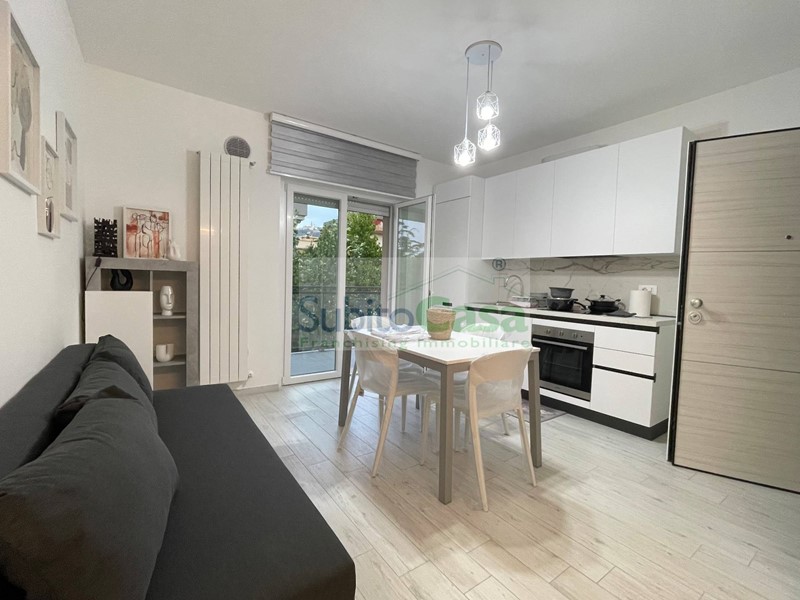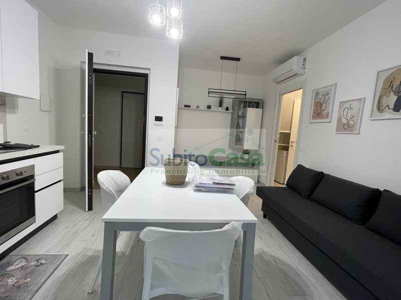 L'appartamento è situato all'interno di un condominio di nuova costruzione, in classe energetica "A+", situato al 2° piano con ascensore, sviluppa 50 mq e si compone da ingresso con comodo angolo-cottura e zona giorno, camera matrimoniale, bagno con doccia oltre a balconi; L'appartamento è dotato di materiali e rifiniture di pregio, mobilia nuova, lavastoviglie, lavatrice e riscaldamento autonomo.