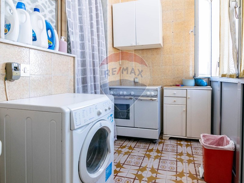 Alla destra del disimpegno si trova una cucina semi abitabile, funzionale e luminosa, dotata di un balcone con affaccio interno. La zona esterna è in parte verandata e ospita una pratica lavanderia dove è presente anche un secondo servizio completo di wc e doccia, utile come spazio di supporto alla vita quotidiana.