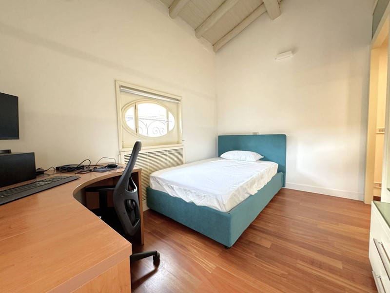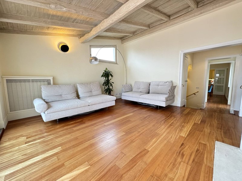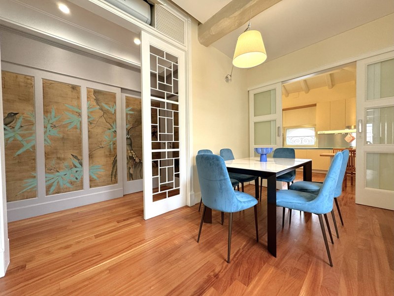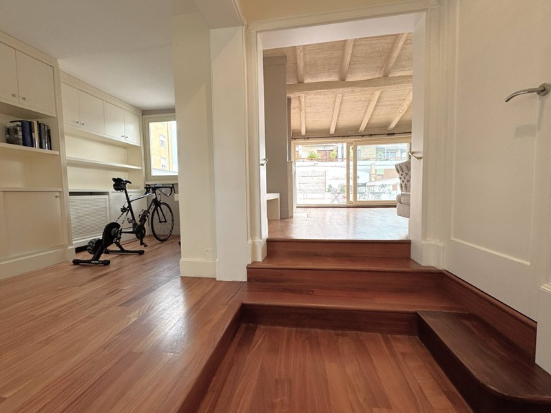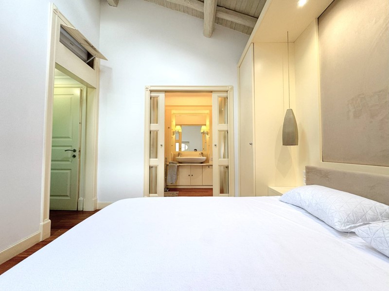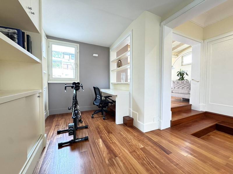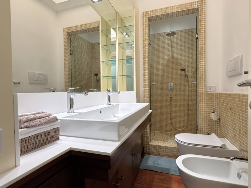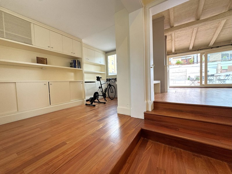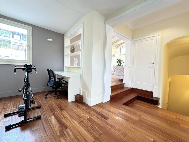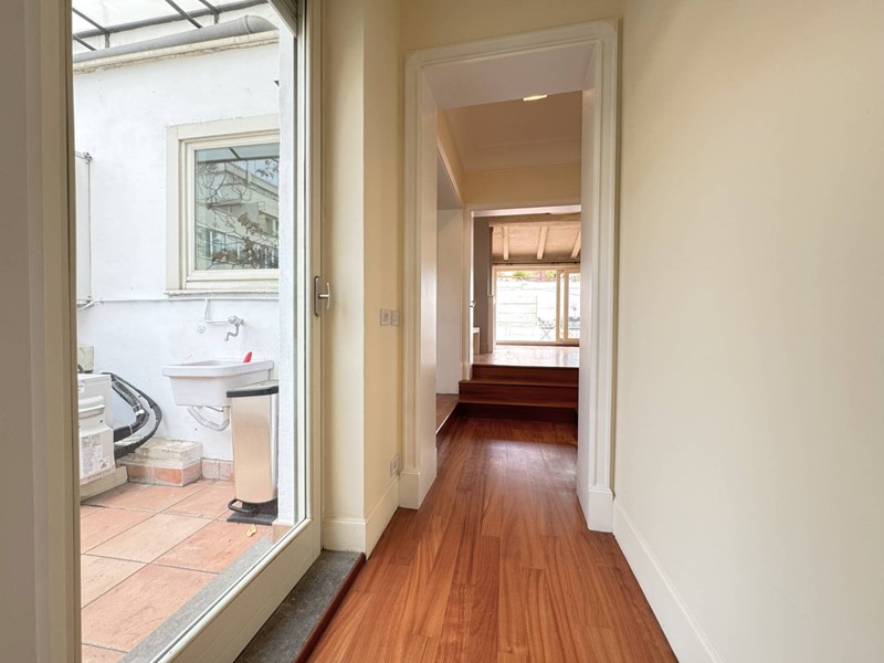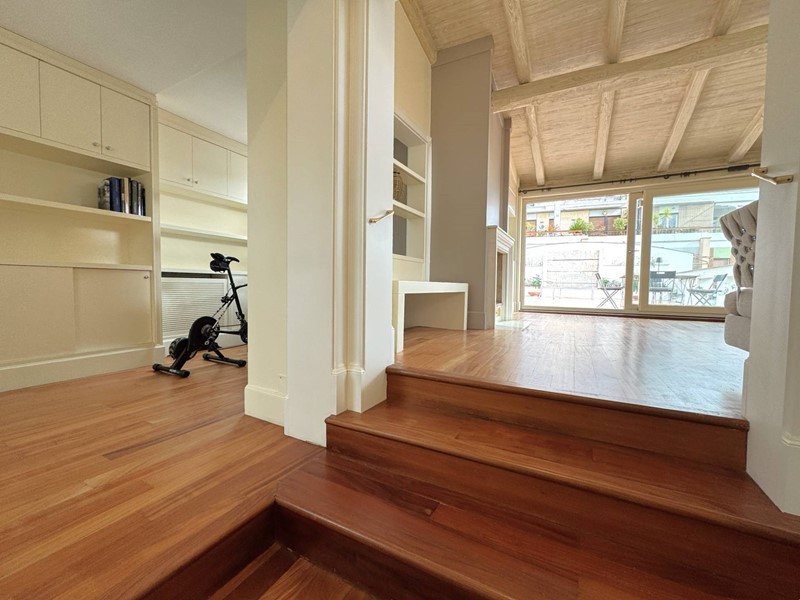 IN TRATTATIVA - Attico esclusivo con 3 posti auto, finemente ristrutturato, in vendita San Giovanni - via Casalmonferrato. Rara opportunità. Nelle vicinanze di piazza dei Re di Roma precisamente in via Bobbio, in un elegante edificio in stile liberty, recentemente ristrutturato, provvisto di ascensore, costruito agli inizi del '900 in posizione sopraelevata rispetto alla via, proponiamo in vendita un attico posto al 2° e 3° piano, avente una superficie catastale complessiva di 202 mq, caratterizzato da un affaccio aperto e molto arioso, con ampie vedute sui gradevoli giardini dei fabbricati confinanti, aventi accesso da via Casalmonferrato. L'immobile gode di una quadrupla esposizione, totalmente esterna e molto tranquilla, si distingue per la presenza di un caratteristico soffitto (altezza massima 4 metri) con travi in legno a vista e 10 lucernari motorizzati tipo velux, circostanze che garantiscono notevole luminosità, silenziosità e una percezione complessiva di elevato comfort abitativo. La casa è dotata di due ingressi protetti con porte blindate: il primo dei due è posto al piano ammezzato tra il primo e il secondo ed è accessibile dalla scala condominiale, l'altro si trova al 2° piano e permette di entrare nell' appartamento direttamente dall' ascensore. La zona giorno dell'appartamento è composta da un' ampio living diviso in un due ambienti contigui, di cui, uno dotato di camino con parete attrezzata, utilizzato come zona conversazione e l' altro, totalmente arredato ad uso studio, una camera da pranzo, una cucina abitabile completamente equipaggiata, un terrazzino di servizio, un piccolo bagno cieco e un vano ripostiglio con finestra e allaccio idrico per la lavatrice. Dal living si accede a uno splendido terrazzo a livello avente una superficie di 80 mq circa, caratterizzato da una forma regolare e dalla presenza di una parete con una fontana a cascata. Dal predetto terrazzo, si raggiunge agevolmente con una comoda scala il piano superiore, dove sono presenti un torrino (perfetto come studio) con piccolo bagno e 2 ulteriori terrazze per un totale di 35 mq circa. La zona notte, posta al medesimo livello della zona giorno, ospita la camera padronale dotata di un armadio a ponte, una cabina armadio arredata e un elegantissimo bagno en suite con vasca idromassaggio. Sono presenti altre due camere da letto, perfette per accogliere comodamente il resto della famiglia, grazie alle cabine armadio attrezzate e agli elementi di arredo su misura che fungono da soppalco utilizzabile. A disposizione delle due camere è presente un terzo bagno con doccia e doppio lavabo. Completano la proprietà 3 posti auto scoperti, ubicati all' interno della corte condominiale, in grado di ospitare automobili di grandi dimensioni e motocicli. L'appartamento è in ottime condizioni generali e vanta rifiniture e dotazioni di alto livello, quali pavimentazione in parquet, porte Bertolotto e artigianali, boiseries in stile orientale, infissi in alluminio e in legno, bagni rivestiti con mosaici e pietra, vari elementi d' arredo su misura. L'alloggio è dotato di un impianto autonomo di riscaldamento, un impianto di condizionamento dell' aria caldo/freddo, videocitofono, e un impianto d'allarme Risco. La produzione di acqua calda sanitaria avviene mediante caldaia a gas. La posizione centralissima, a 200 metri dalla stazione metro Re di Roma ma defilata dal traffico, la vicinanza a ogni tipo di servizio, al polo commerciale di via Appia Nuova, unitamente alle piccole dimensioni, al fascino del contesto condominiale che conta solo 5 unità abitative e alla possibilità di parcheggiare agevolmente, fanno di questa proposta immobiliare un opportunità unica e difficilmente reperibile.