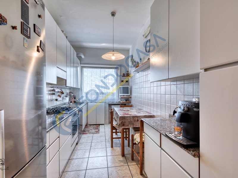 Sita al settimo piano in uno stabile dotato di ascensore, questa soluzione è composta da spazioso ingresso, soggiorno con accesso al balcone, cucina abitabile, due camere matrimoniali con accesso ai rispettivi balconi, bagno finestrato con box doccia e comodo ripostiglio! Le condizioni interne sono buone: gli infissi sono in alluminio con doppio vetro e ribalta, la pavimentazione è in ceramica in tutta la soluzione. Il riscaldamento è centralizzato con termovalvole, l'importo delle spese comprende tutte le spese generiche e fisse ad eccezione della quota del riscaldamento a consumo. E' presente l'impianto di aria condizionata. L'appartamento ha doppia esposizione NORD-EST e SUD-OVEST.