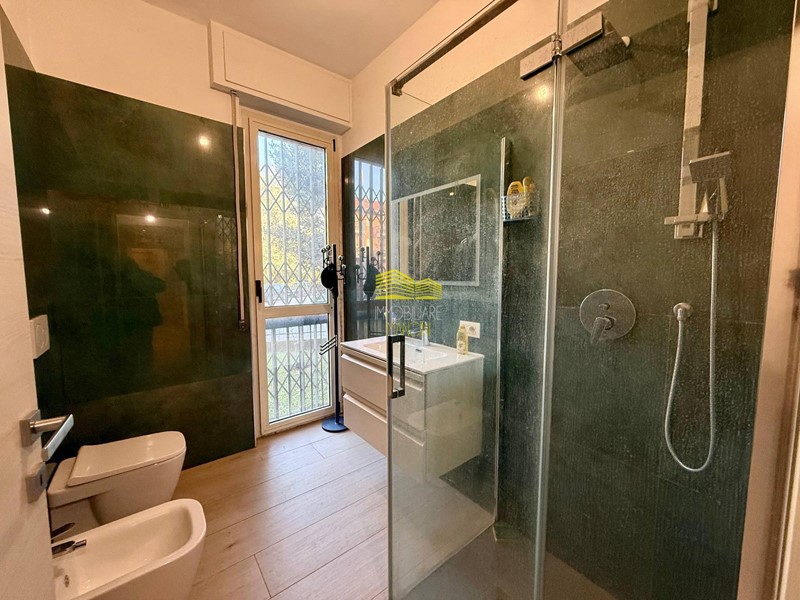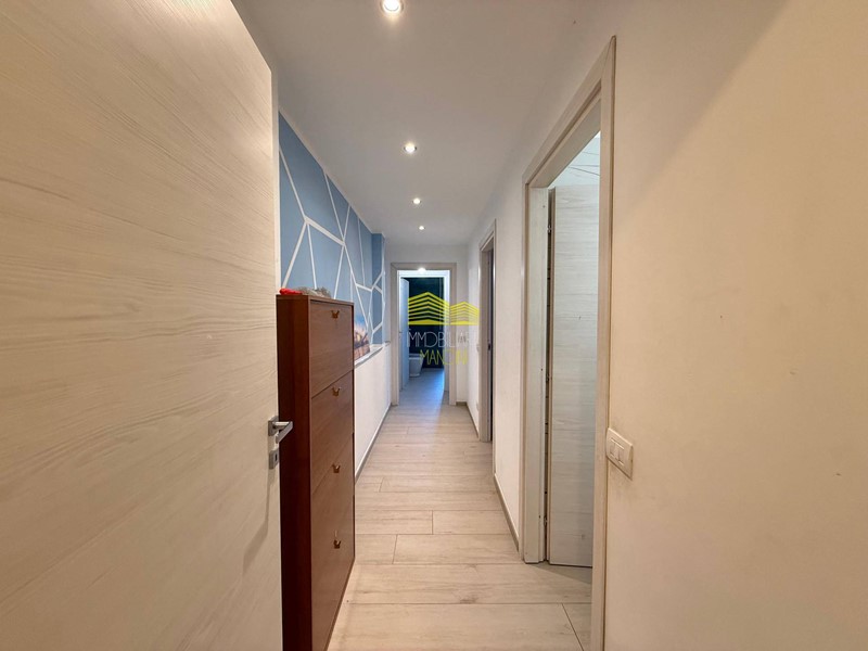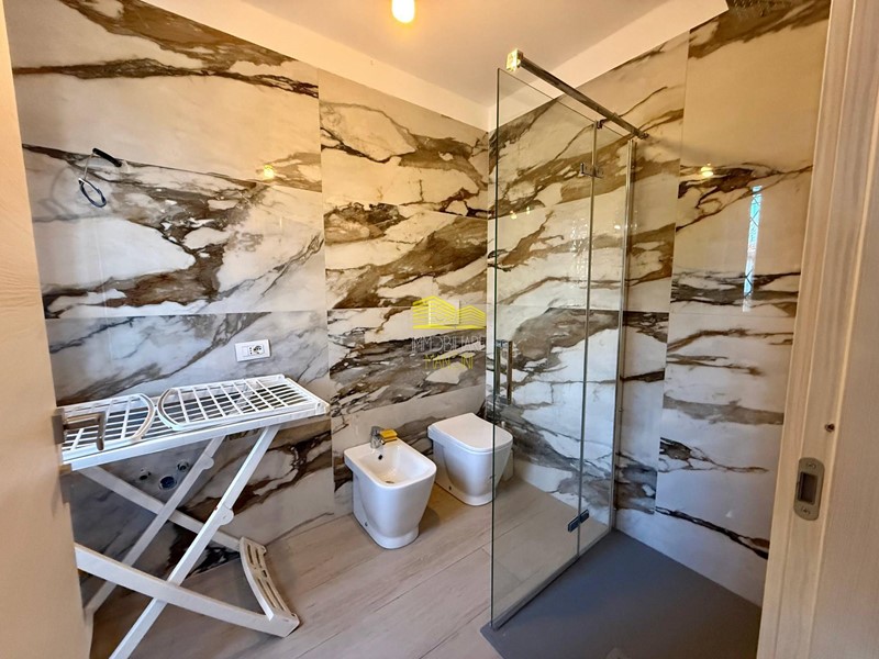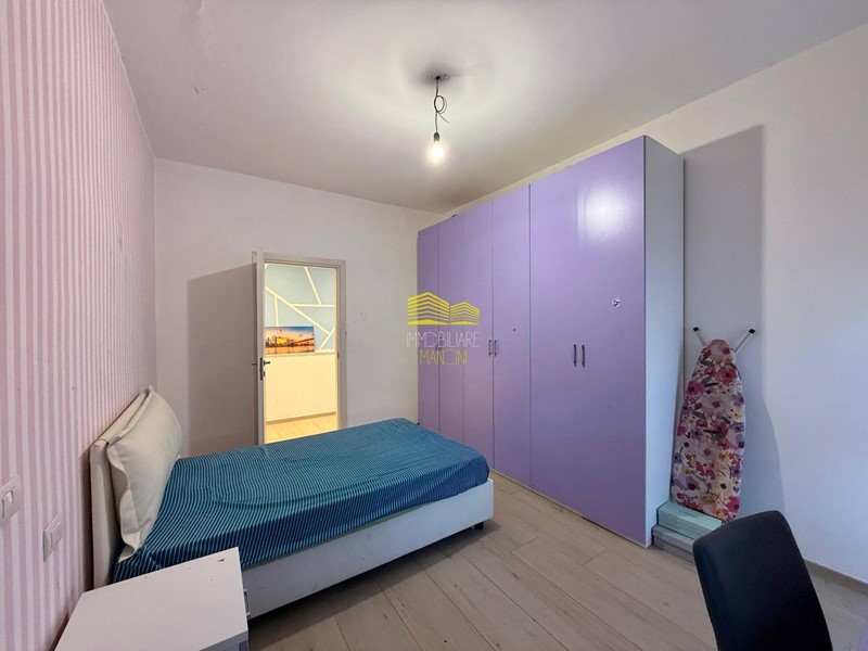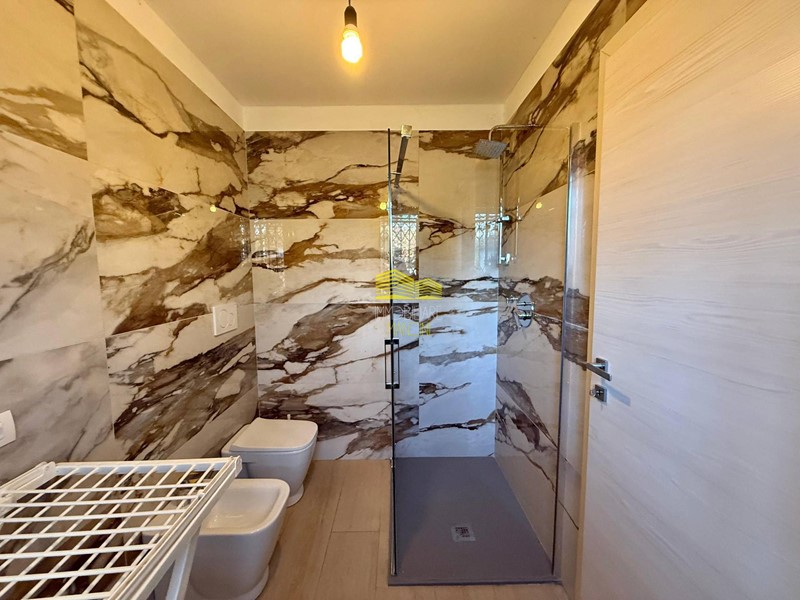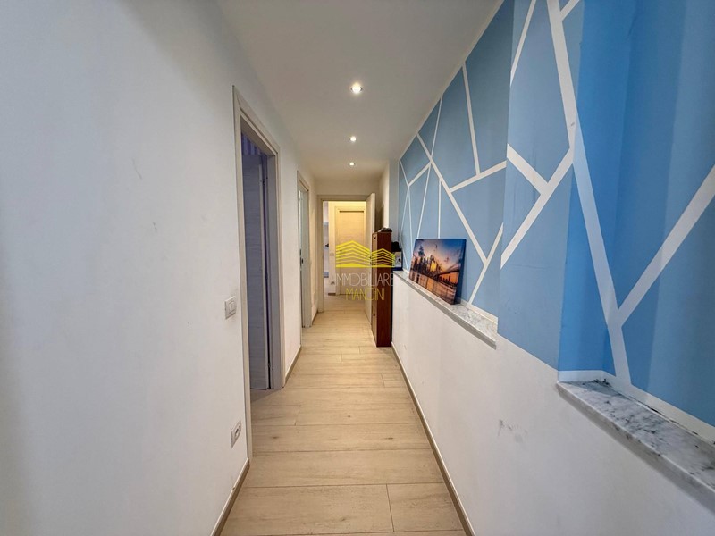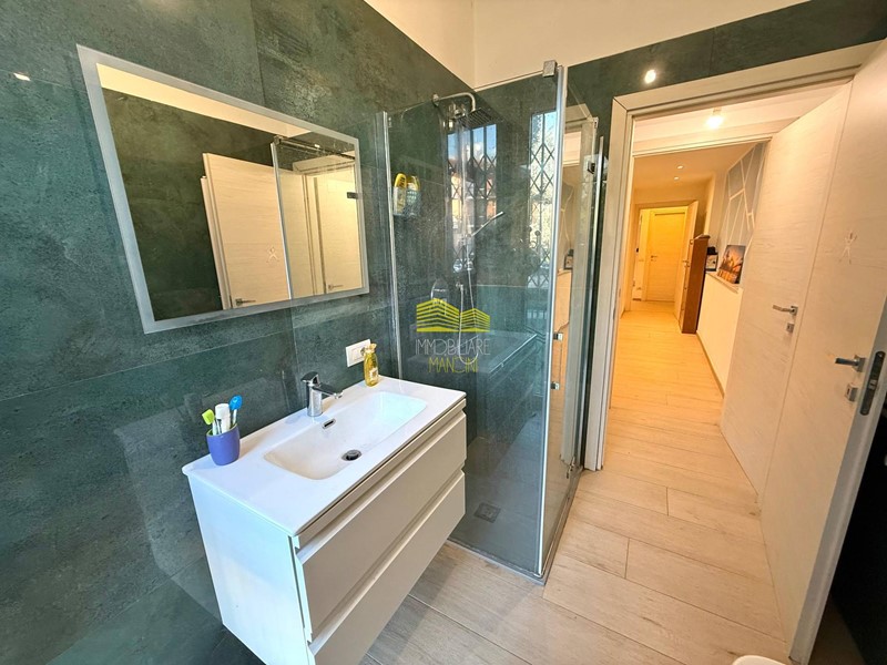 L'appartamento è composto da ingresso, ripostiglio, ampia e luminosa zona giorno con CUCINA A VISTA con accesso su BALCONE di circa 5 mq, disimpegno, bagno cieco con VMC, cameretta con bagno padronale finestrato e box doccia e camera da letto, entrambe con accesso su secondo BALCONE di 5 mq, terzo bagno finestrato (anch'esso con box doccia).