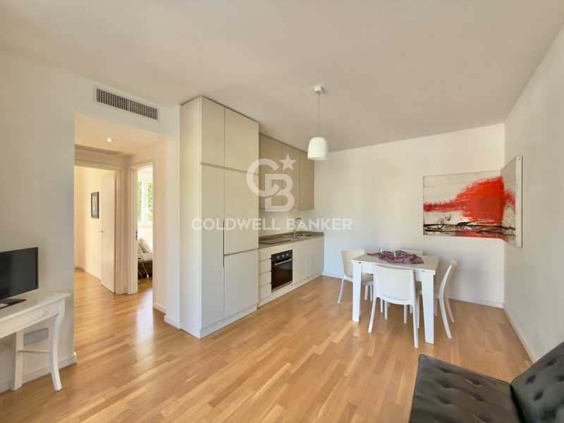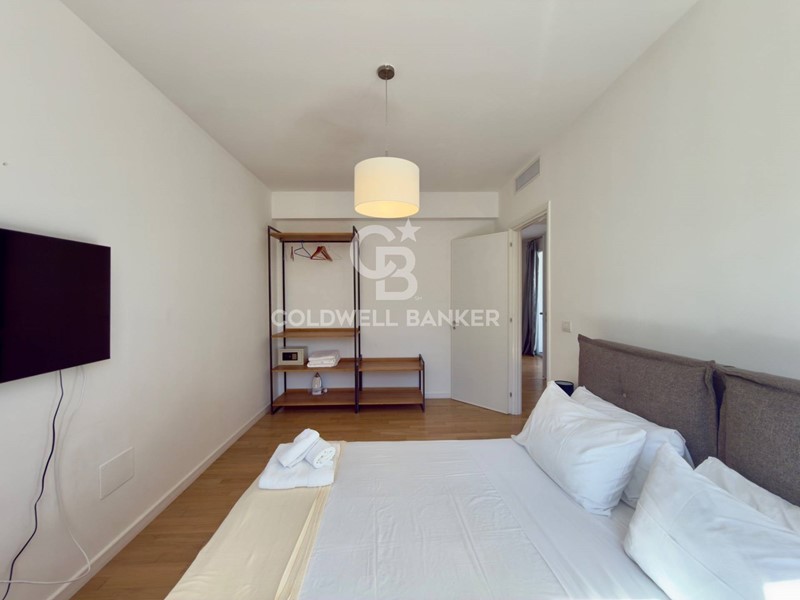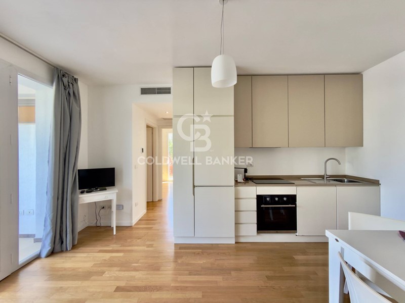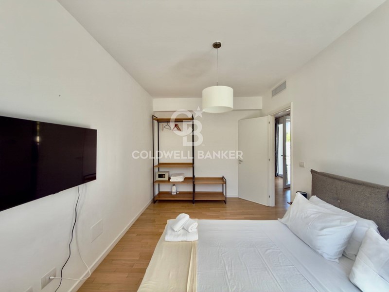Lappartamento accoglie con una luminosa zona living con cucina realizzata su misura di alto livello, completa di elettrodomestici di qualità.
