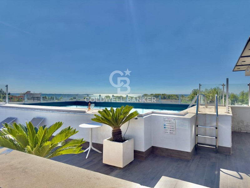 Piscina panoramica riscaldata e con vista mare, affacciata sul Mar Ionio, da cui ammirare tramonti indimenticabili