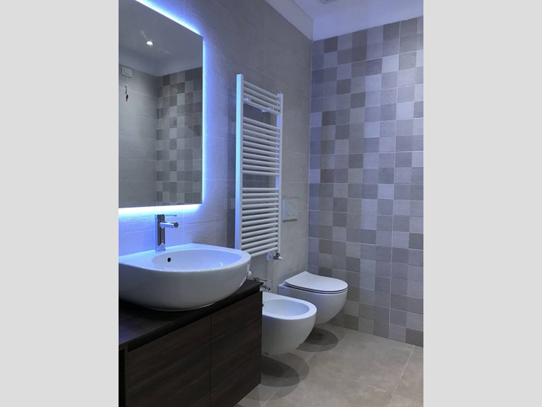 L'appartamento è così composto : ingresso su ampia zona living con soggiorno e cucina abitabile a vista, 2 bagni uno dei quali en suite, 2 camere una delle quali dotata di cabina armadio.