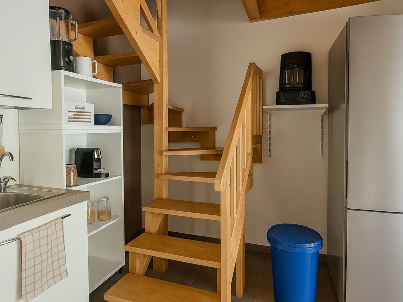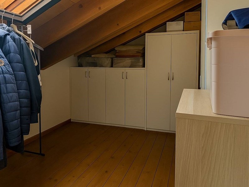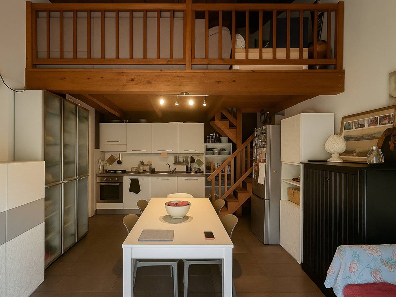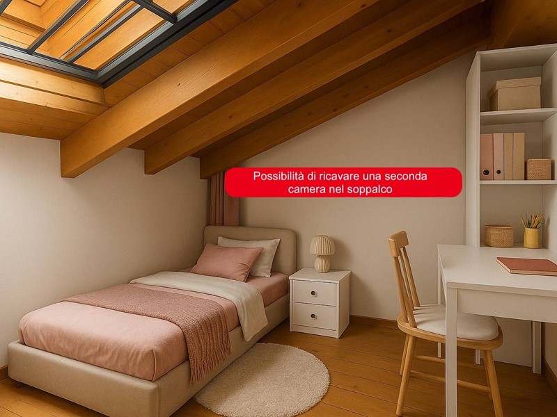 Al piano superiore, soppalco in legno con due ambienti: possibile seconda camera e salotto/zona relax, entrambi riscaldati e con predisposizione clima.