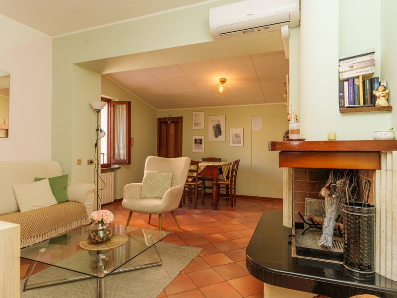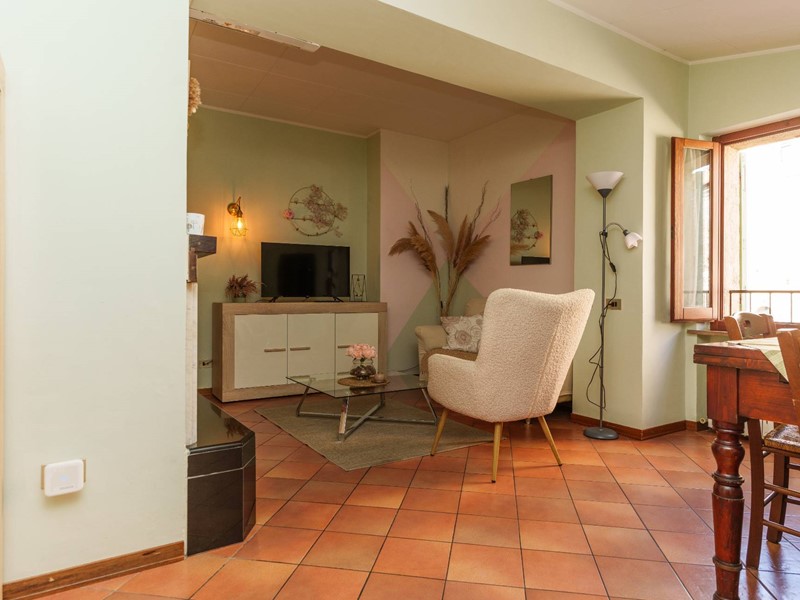 Lappartamento viene venduto arredato. La zona giorno comprende un soggiorno con camino in muratura, pavimenti in cotto e tonalità interne che conferiscono unatmosfera raccolta. Un corridoio separa gli ambienti privati, composti da due camere da letto e un bagno con vasca. Lesposizione nord-ovest garantisce una buona luminosità nel corso della giornata. Sono inoltre presenti due ripostigli.