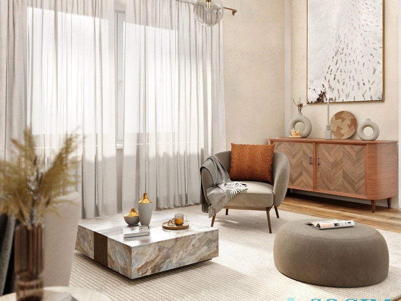 Lappartamento è situato al piano terra con accesso privato dal cortile interno. La metratura complessiva di mq. 90 ca , è cosi composta: appartamento di mq. 77 ca con ingresso nella zona living, cucina, servizio, disimpegno che conduce alla zona notte con camera e bagno en suite oltre soppalco nella zona giorno di mq. 26 ca con altezza interna di ca 1.90 mt "SPP", . Il tutto è caratterizzato da finiture di pregio e materiali di alta qualità.