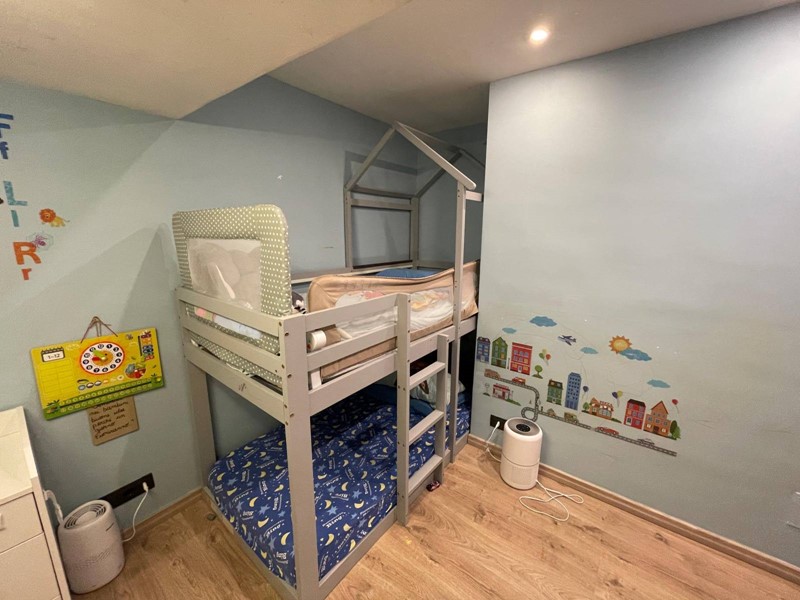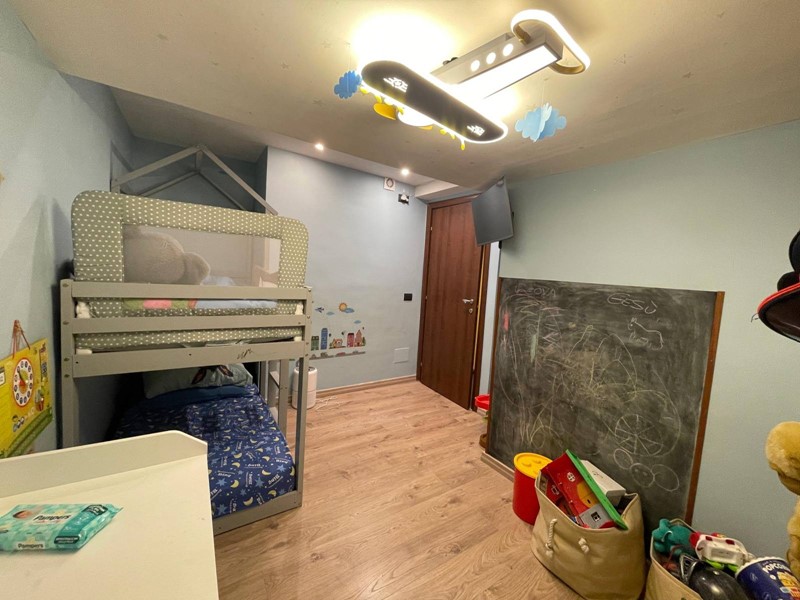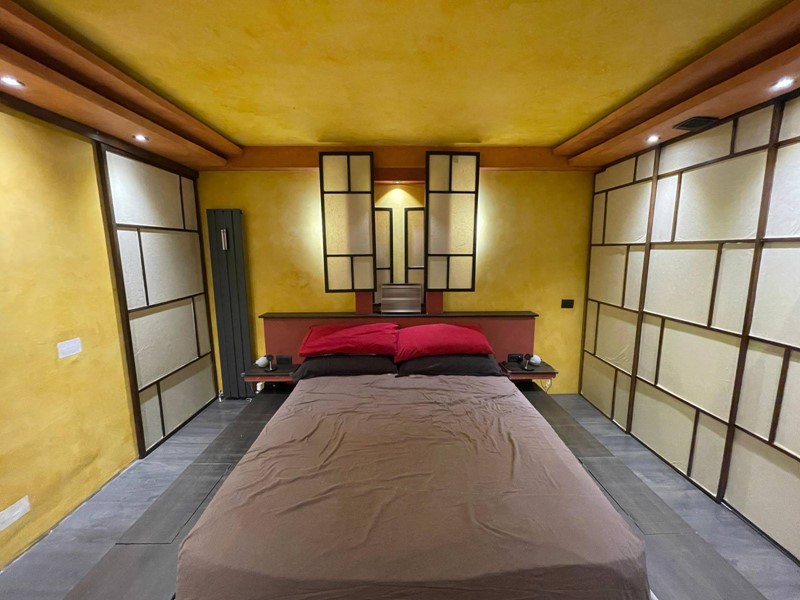 Piano seminterrato: camera matrimoniale e secondo bagno con raffinata cabina armadio, cameretta. Ingresso secondorio collegato al box.