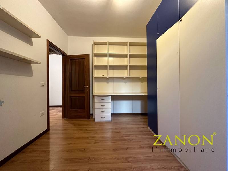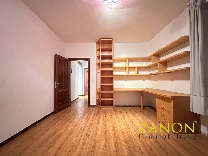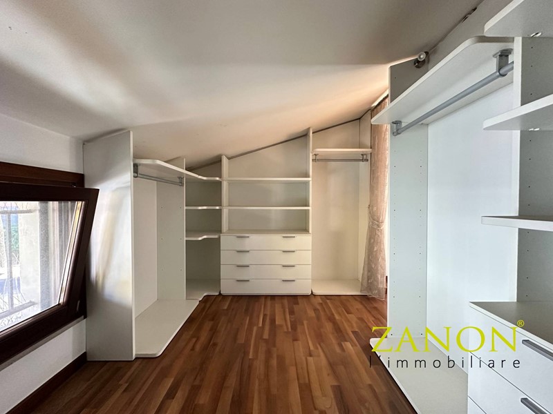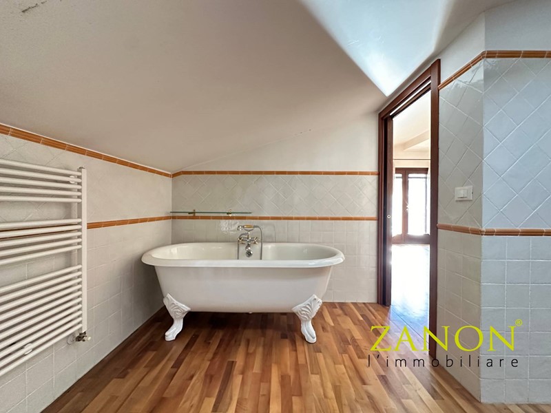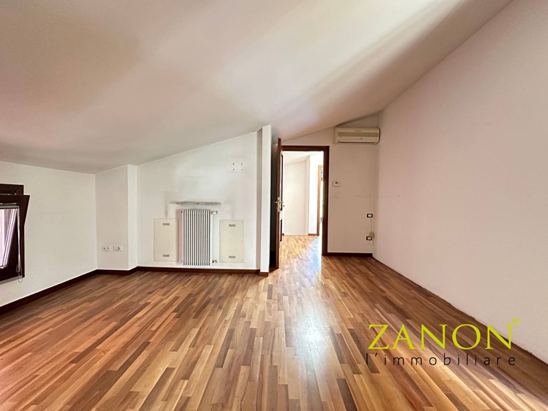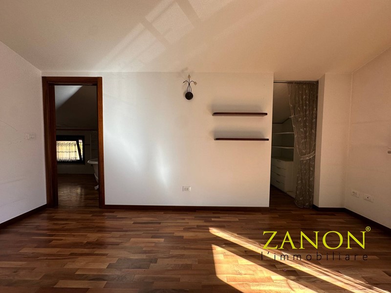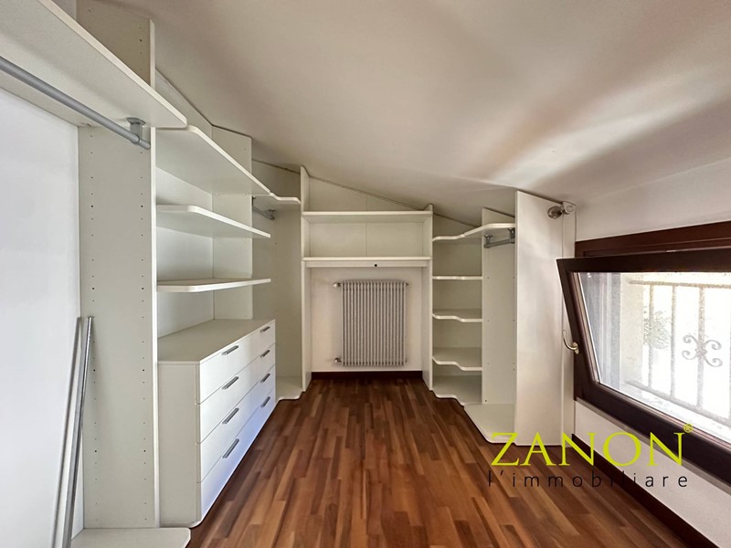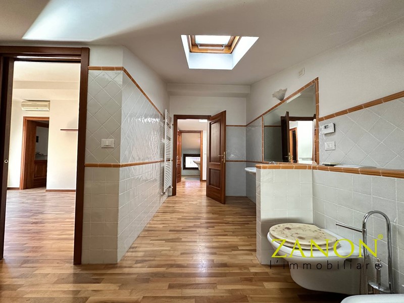 A completare il piano, un bagno con tutti i servizi, la seconda camera da letto e una suite padronale con bagno, cabina armadio e terrazzo con affaccio sulla storica Via Leopardi.