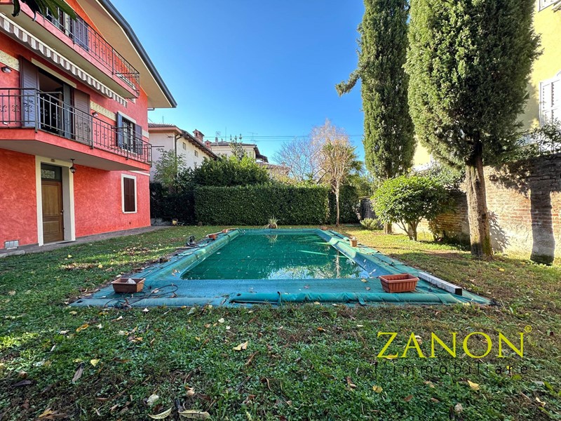 Completa la proprietà, un elegante giardino di 416 mq con piscina di 32 mq, dotata di illuminazione notturna; offre uno spazio ideale per momenti di relax.