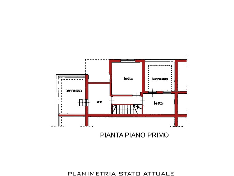 Piano primo: cameretta, studio, bagno, due terrazzini