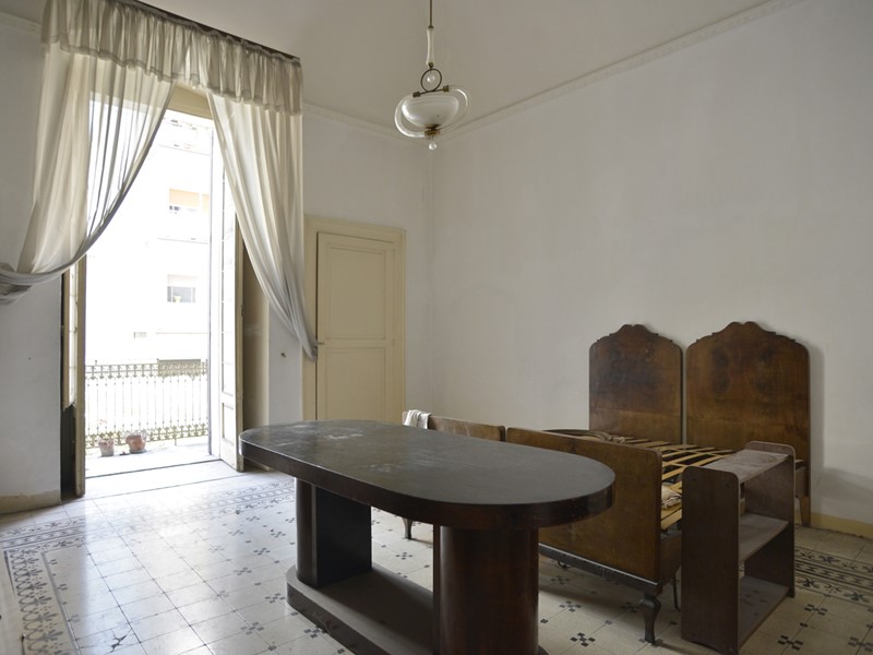 L'appartamento, di mq. 125 ca., è caratterizzato dalla struttura tipica dell'epoca di costruzione: gli ambienti sono ampi e si susseguono uno dopo l'altro; le volte sono alte oltre mt. 5,00; la pavimentazione è in cementine d'epoca.