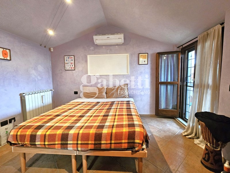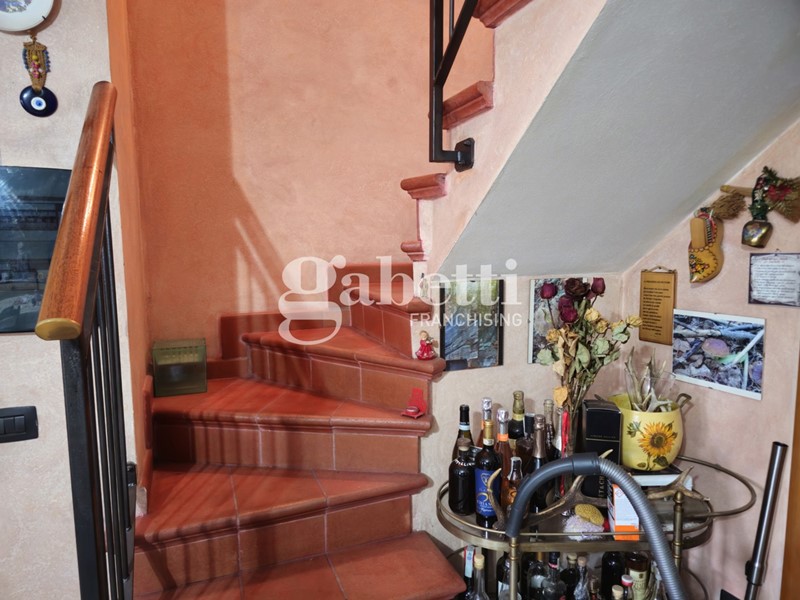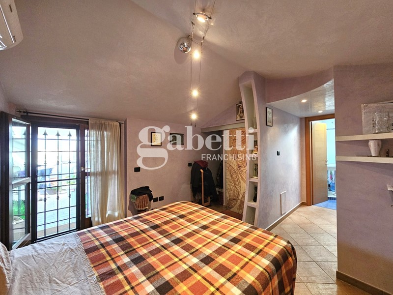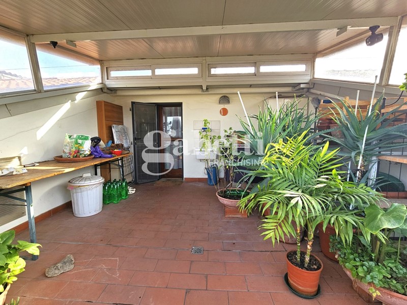 L'appartamento è disposto su due livelli ed è composto da: Ingresso sull'ampio soggiorno con angolo cottura con accesso a TERRAZZO di cui una parte chiusa adibita a lavanderia, bagno con l'aspiratore, due camere da letto di cui una con ulteriore TERRAZZA tergale con affacci sul verde e tenda da sole e bagno finestrato. Al livello superiore troviamo una camera da letto, bagno con velux e TERRAZZA ABITABILE DI 20 mq ca con bbq e in parte chiusa per essere vissuta anche di inverno.