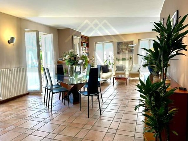 L'appartamento quadrilocale suddiviso su due piani (primo e secondo) si compone di soggiorno doppio con Camino (canna fumaria da ripristinare), uscita da tutte le porte finestre su un lungo balcone che porta ad un ampio terrazzo soleggiatissimo dove troviamo una zona relax, la zona pranzo e un tavolo da ping-pong, cucina abitale con uscita sulla grande terrazza, ampio bagno e locale lavanderia, la scala interna auto portante in legno porta al piano superiore dove troviamo tre camere da letto vista lago di cui una con balcone e un grande bagno con vasca.