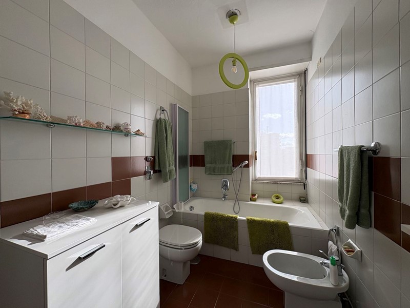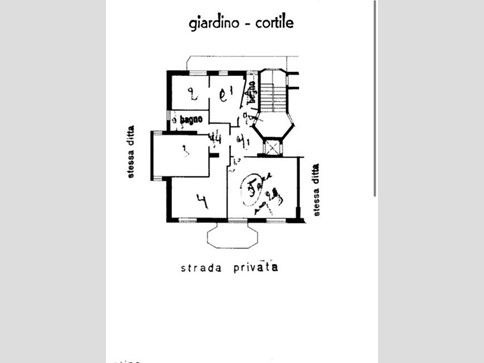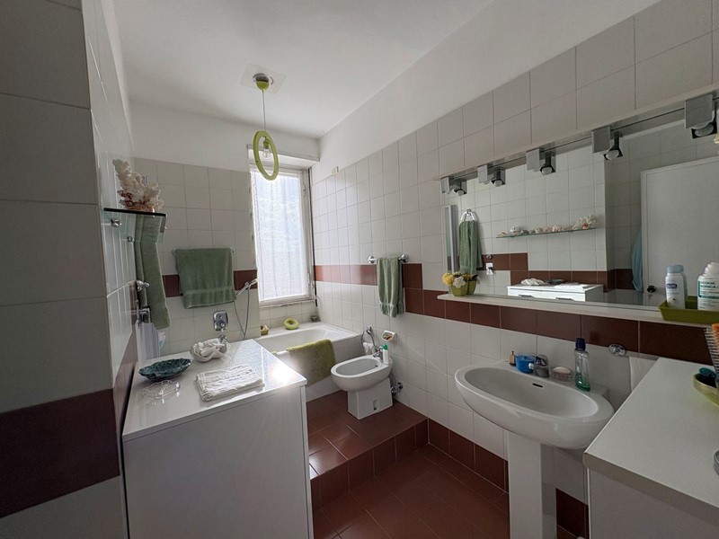 L'appartamento è cosi disposto: doppio ingresso, doppio soggiorno, cucina abitabile, tinello, due camera da letto e due bagni.