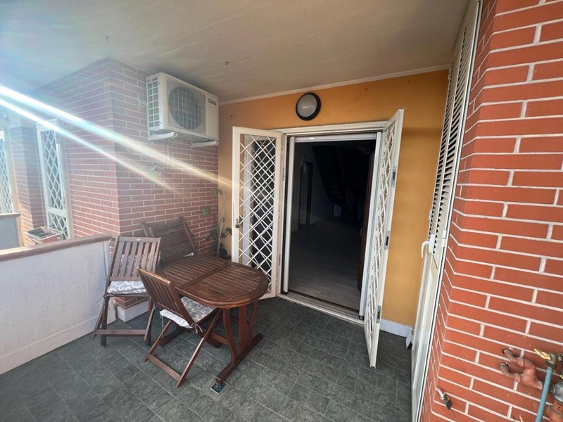 In zona Anagnina-Ikea, Via Renato Salvatori, in palazzina del 2011 di 3 piani con ascensore, proponiamo la vendita di un Attico bilivelli di 125 mq ca, piu' due terrazze 14 mq ca e 18 mq ca, un balcone di 12 mq ca e una cantina di 7,5 mq ca. Al Secondo piano troviamo un ampio disimpegno, un soggiorno, due camere da letto, cucina, doppi servizi con terrazzino abitabile con accesso dal soggiorno e balconata angolare con accesso da una camera. Al Terzo piano un disimpegno/studio con uscita sul terrazzo, un bagno e una camera. Completa la proprieta' un posto auto coperto al piano S1, raggiungibile con l'ascensore. Ottimo stato. Piena proprieta', in corso la procedura di affrancazione. Infissi con doppi vetri. Grate alle finestre. Termoautonomo. Le spese condominiali ammontano ad 85,00 mensili. Pannelli solari. CL G 175 IPE.