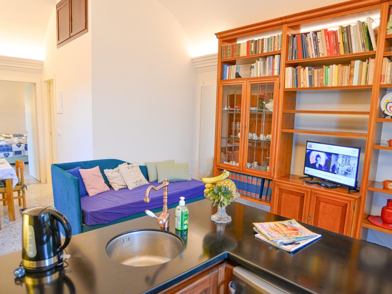 L'alloggio si compone di soggiorno con angolo cottura, camera da letto matrimoniale, bagno, ampio cortile vivibile (con diritto di passaggio) e giardino privato.