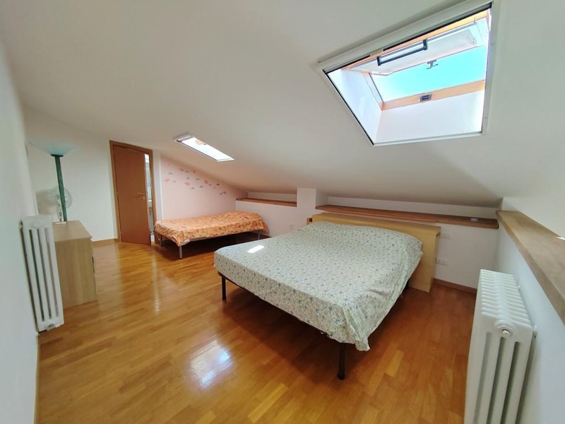 mansarda, con cabina armadio e secondo bagno finestrato con doccia.