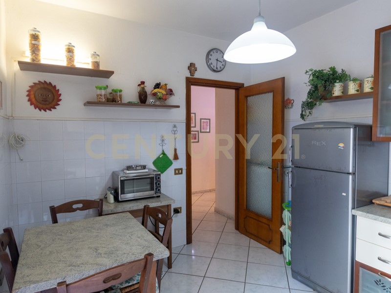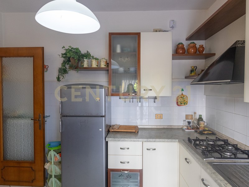L’appartamento ha una metratura comoda (circa 100 mq) e spazi ben pensati: soggiorno ampio e luminoso, cucina abitabile con accesso diretto alla terrazza — uno di quegli spazi che diventano automaticamente il centro della vita estiva, tra cene senza orologio e chiacchiere lente.