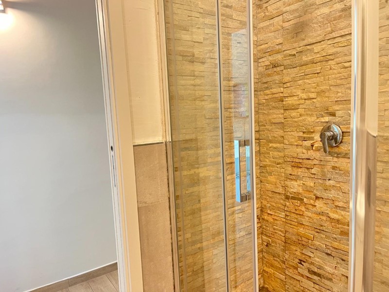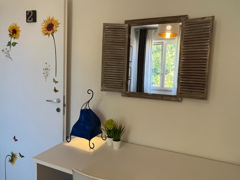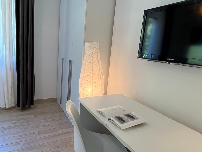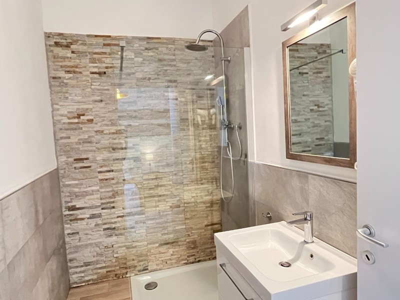 Attualmente suddiviso in: ingresso, cucina-soggiorno con balcone panoramico, ripostiglio, camera matrimoniale con bagno finestrato e altre 2 camere matrimoniali con bagno.