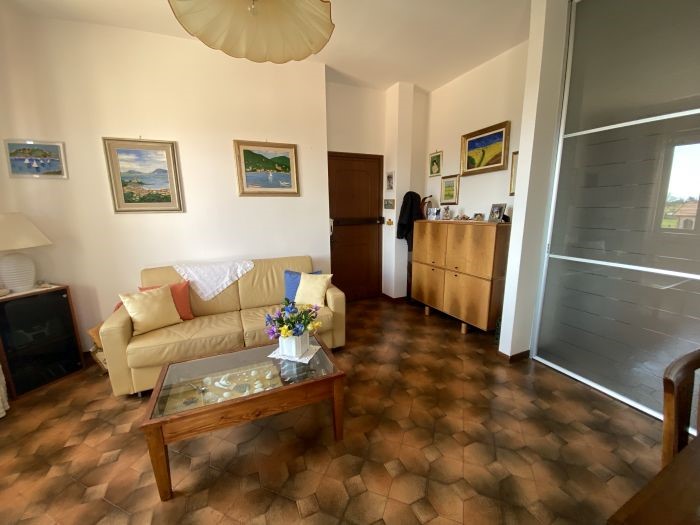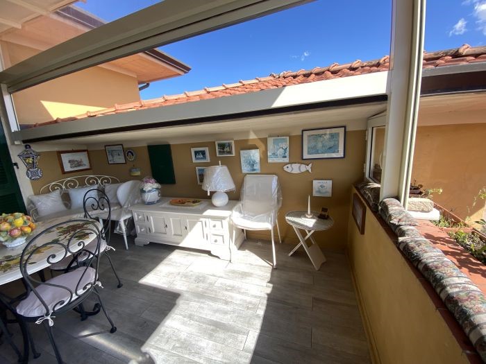 Bocca di Magra all'inizio del borgo dei pescatori, in zona comoda con accesso carraio e posto auto di proprietà, proponiamo appartamento in piccolo stabile anni 70 in ordine, posto al piano secondo ed ultimo. L’appartamento è composto da ingresso in soggiorno con camino, con affaccio su ampia terrazza attrezzata con tende elettriche che permettono la chiusura totale, così da creare un secondo soggiorno, cucina abitabile, camera matrimoniale e bagno. Viene venduto arredato. Parziale vista sul mare. Completa la proprietà un garage attrezzato con lavandino e doccia. L'ubicazione dell'immobile permette di vivere il borgo, le sue spiagge, i giardini e tutte le attività, in modo molto comodo, ma allo stesso tempo nella totale tranquillità.