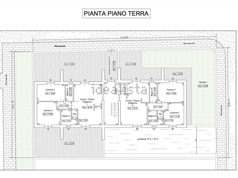 In zona semicentrale, molto luminosa, ma non distante dai principali servizi e con adiacenti aree a verde, in corso di costruzione, consegna maggio 2026, fabbricato per civile abitazione, costituito da n° 6 appartamenti, 2 per piano, tipologia quadrilocali con doppi servizi, superficie commerciale circa mq 90, con ampie terrazze o loggiati, autorimesse di circa mq 25 e cantinette di mq 6.