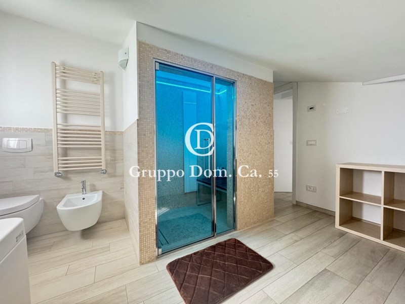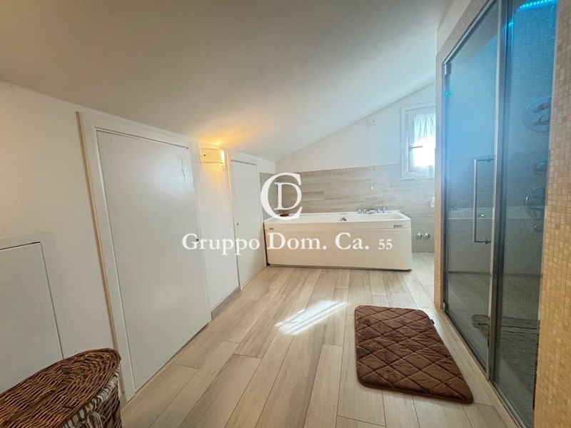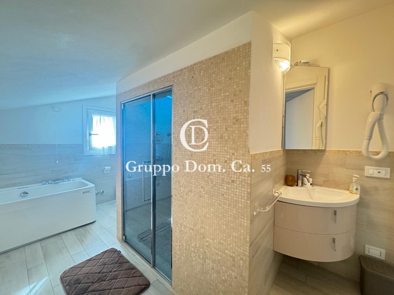 Al piano mansardato si trova una spaziosa camera matrimoniale con bagno privato dotato di doccia e bagno turco.