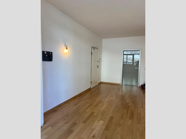 • Ampio soggiorno con accesso diretto al balcone e al resede privato adibito a giardino (circa 50 m²)