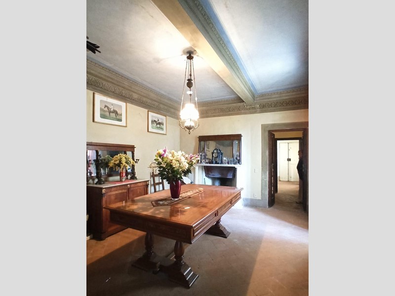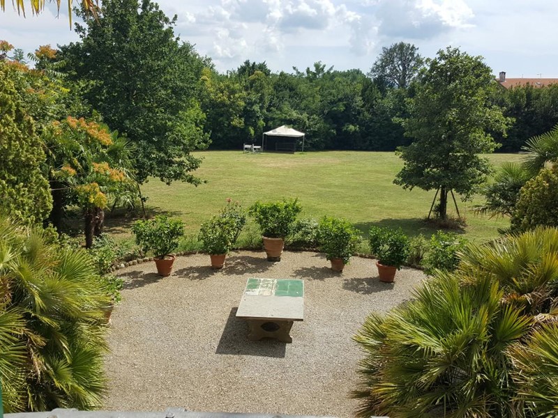 Al piano terra si sviluppano ambienti generosi e funzionali: una spaziosa sala da pranzo, una cucina di grandi dimensioni e accoglienti zone dedicate alla socialità, pensate per vivere la Villa in ogni sua sfumatura. Ai piani superiori, eleganti camere da letto offrono viste panoramiche sul parco secolare, regalando quiete e bellezza in ogni stagione.