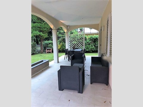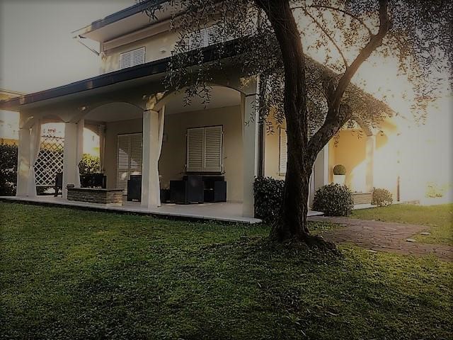 Ronchi a ca 500 metri dal mare in un piacevole contesto, immerso nel verde e silenzioso, villa singola libera su quattro lati completamente ristrutturata nel 2017 infissi e persiane nel dic. 19 (5 porte finestre e 11 finestre) con ampio garage e 2 posti auto all’interno della proprietà, più un ulteriore ripostiglio. La villa ha 2 ingressi, uno pedonale ed uno con cancello automatico per l’ingresso auto; esternamente è circondata da un giardino di ca 700 mq che confina con un boschetto e permette molta privacy e tranquillità. La villa, ha un grande portico dove poter pranzare, e comodi divanetti relax. La caratteristica principale è che pur mantenendo la privacy è vicinissima a tutti i servizi ed in posizione centrale di tutta sicurezza. Internamente è così composta, al piano terra: ampio ingresso con acquario a parete di 300 litri, una grande sala con parete attrezzata in cartongesso dove è collocato un grande camino a legna, corridoio con un ampio armadio a muro a vetri, bagno con vasca, grande sala da pranzo con camino a pellet, cucina abitabile, secondo bagno e lavanderia; al primo piano: bagno con doccia, corridoio con un ampio armadio a muro a vetri, 3 camere matrimoniali con balconi, possibilità di ricavare una quarta camera, porta blindata e videocitofoni. La villa è molto luminosa , completamente climatizzata, provvista di zanzariere, pozzo con impianto di irrigazione,ed è provvista di inferriate di alta qualità, di sistema di allarme perimetrale interno ed esterno e di sistema video sorveglianza.