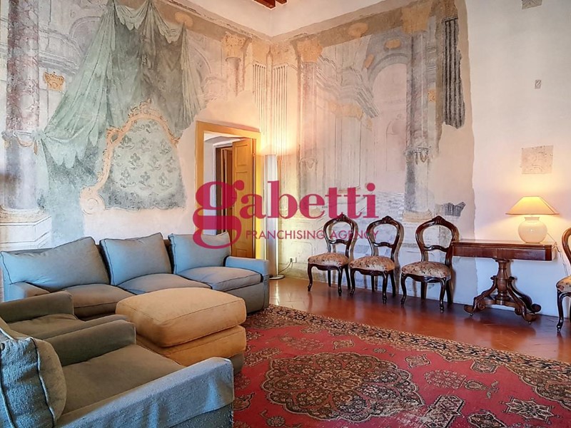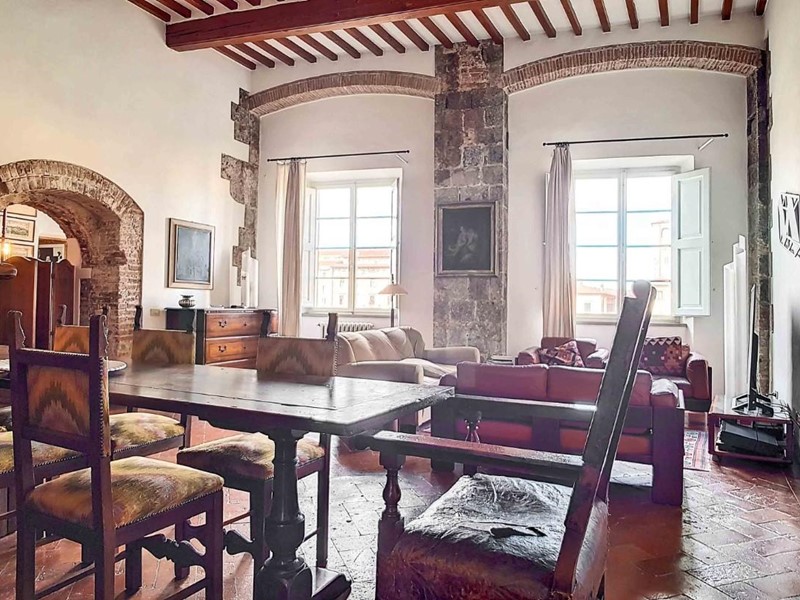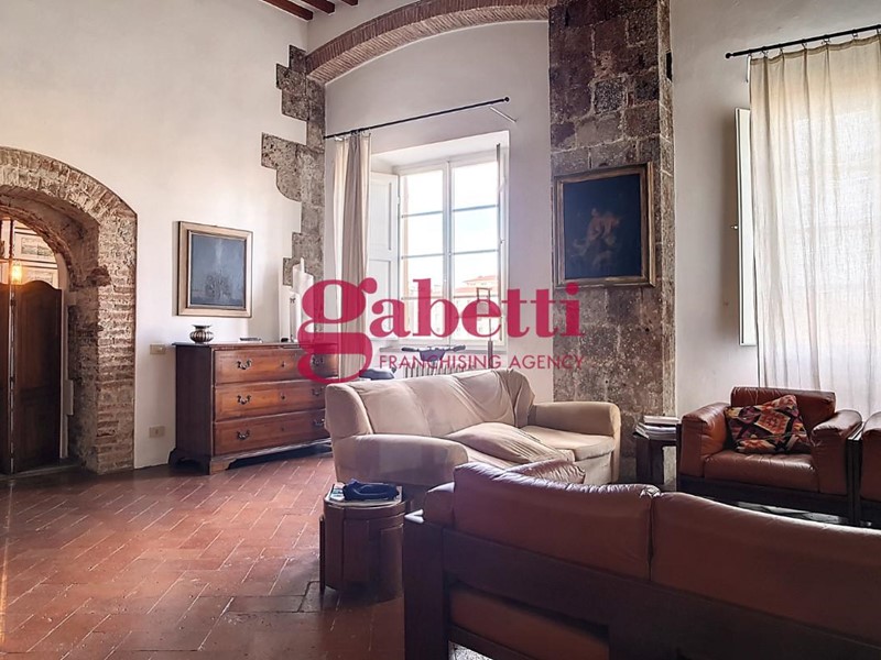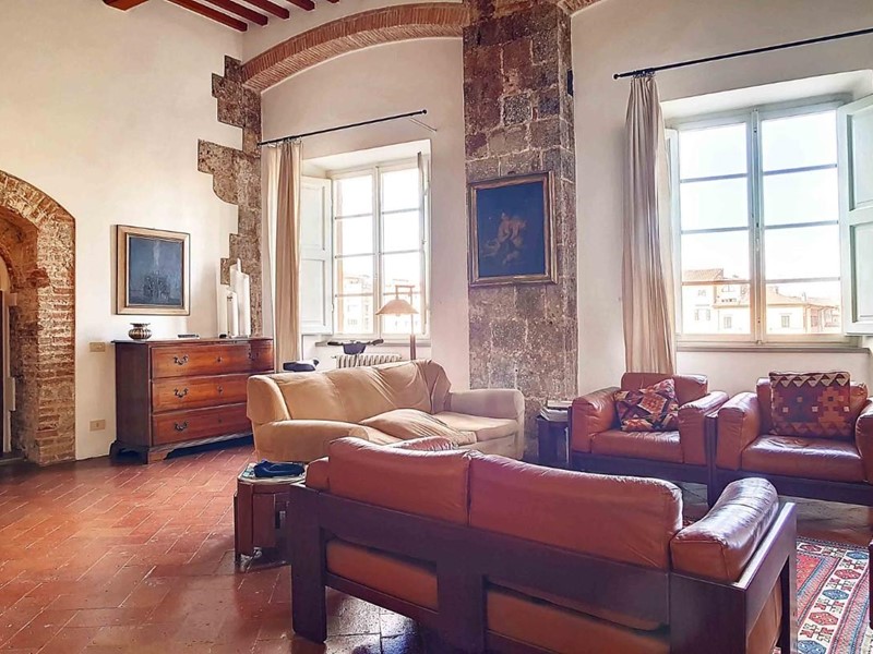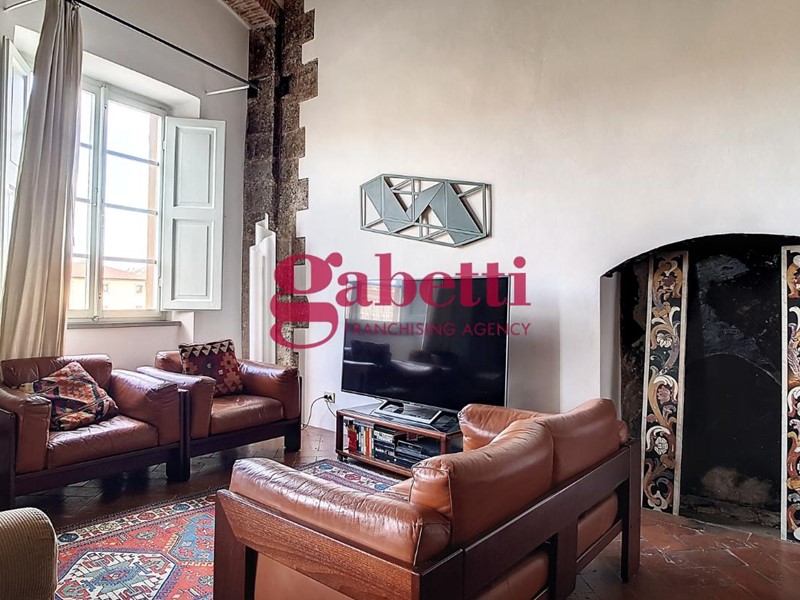 L'appartamento che vi presentiamo è un immobile di oltre 300 mq posto al secondo piano del palazzo medievale della nobile famiglia pisana dei Gualandi.