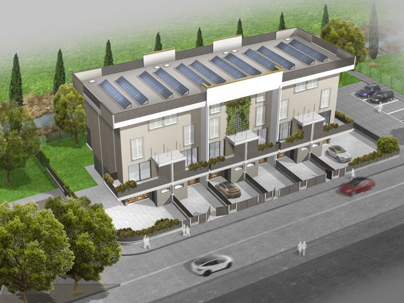 Rif. KSD2 Benvenuti nel nuovo complesso residenziale di prestigio, dove eleganza e sostenibilità si incontrano in perfetta armonia. Questa villetta a schiera, parte di un progetto all'avanguardia, offre un ingresso indipendente che conduce a spazi luminosi e ben distribuiti. Con una superficie commerciale di 105 m² e calpestabile di 85 m², la casa è progettata per massimizzare il comfort abitativo. L'ampio open space accoglie un soggiorno e una cucina abitabile, perfetti per momenti di convivialità.