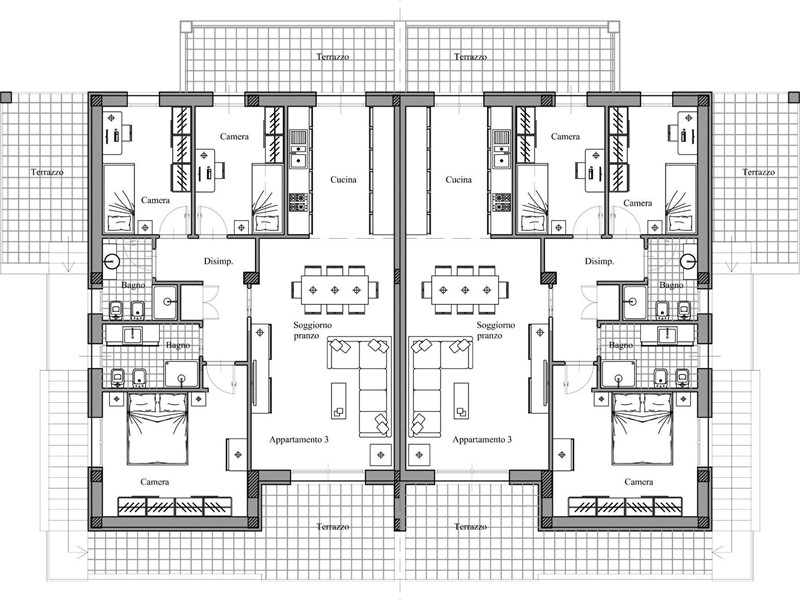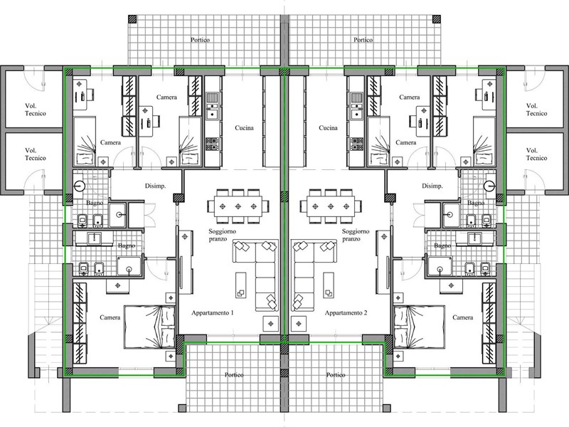 In questa fase è possibile apportare modiche alla superficie degli appartamenti e personalizzare degli interni (ad esempio: ampliare la zona giorno e realizzare 2 camere matrimoniali).