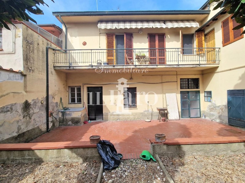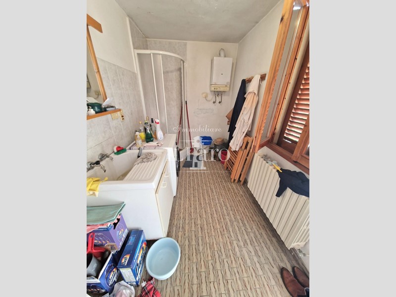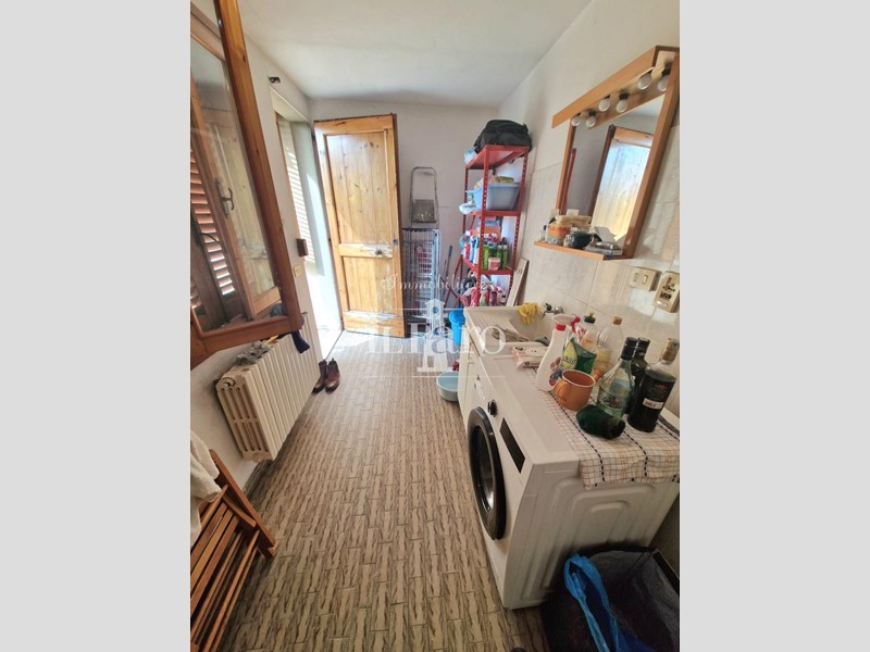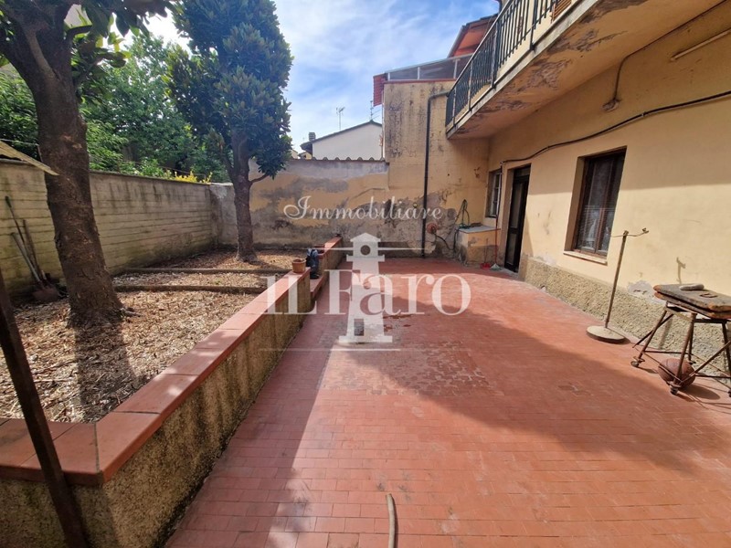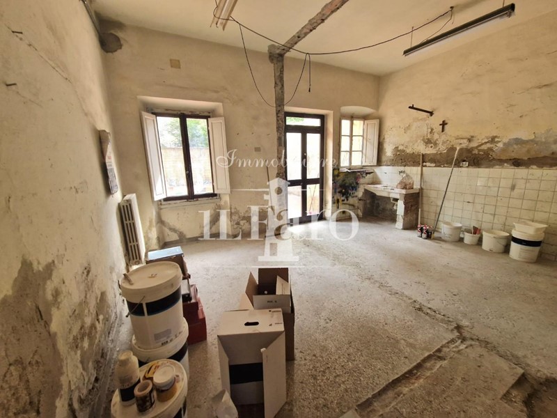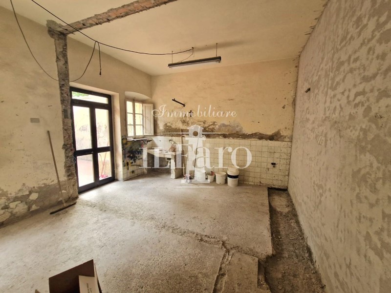L'immobile è così composto: al piano terreno ampia zona giorno-cottura (attualmente lasciata a grezzo dopo lavori di ristrutturazione) che affaccia sulla RESEDE tergale in parte pavimentata ed in parte a verde sulla quale insistono tre locali in muratura ( uno adibito a bagno e due a ripostiglio).