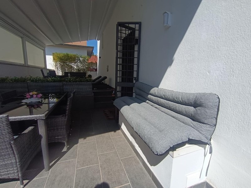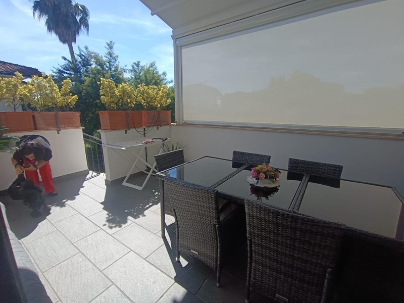Spazi Esterni: Grande terrazza, con tenda motorizzata per il massimo comfort in ogni stagione e per avere maggiore privacy.