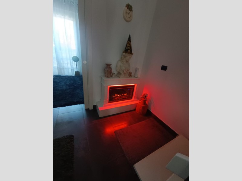 Primo Piano : Grande sala con un elegante camino elettrico smart - cucina - camera e bagno