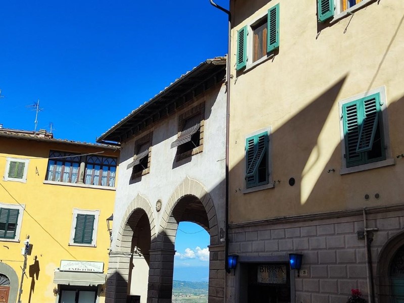 Nel centro storico, terratetto di 220 mq. Questa residenza su più livelli offre spazi ampi e ben distribuiti, con vista panoramica. Dall'ingresso si accede alle scale che portano al primo piano, dove si trova la camera matrimoniale con bagno privato e vista sulla valle di San Miniato. Qui si apre anche un ampio soggiorno con camino e vista panoramica. Al piano superiore si sviluppano la zona pranzo e la cucina, con accesso al terrazzo laterale. Questo piano include anche un secondo soggiorno, una camera da letto e un disimpegno che conduce alla seconda camera matrimoniale e a un bagno con vasca. Diverse pratiche ripostigli sono distribuiti sui vari piani. La soffitta, accessibile dal piano superiore, è ideale come deposito o ulteriore camera da letto.