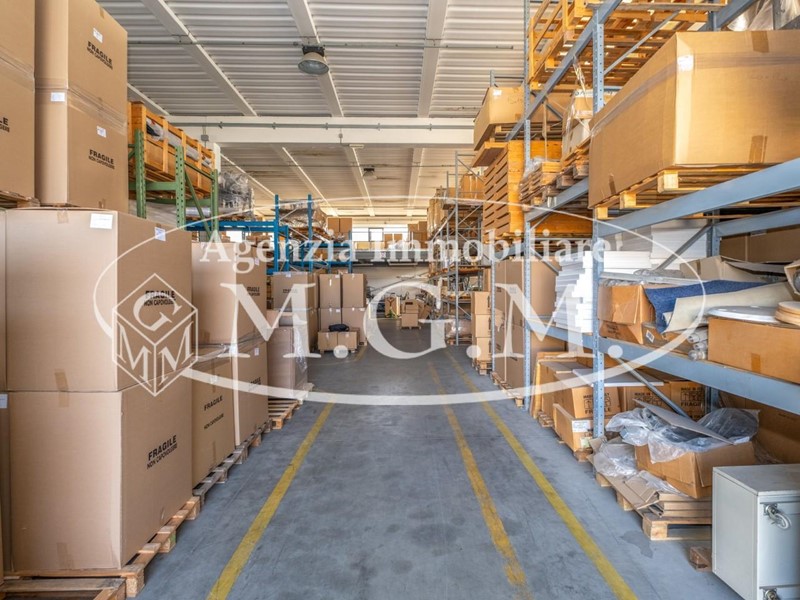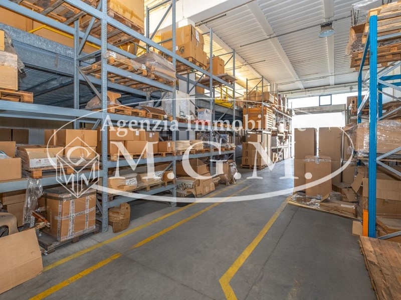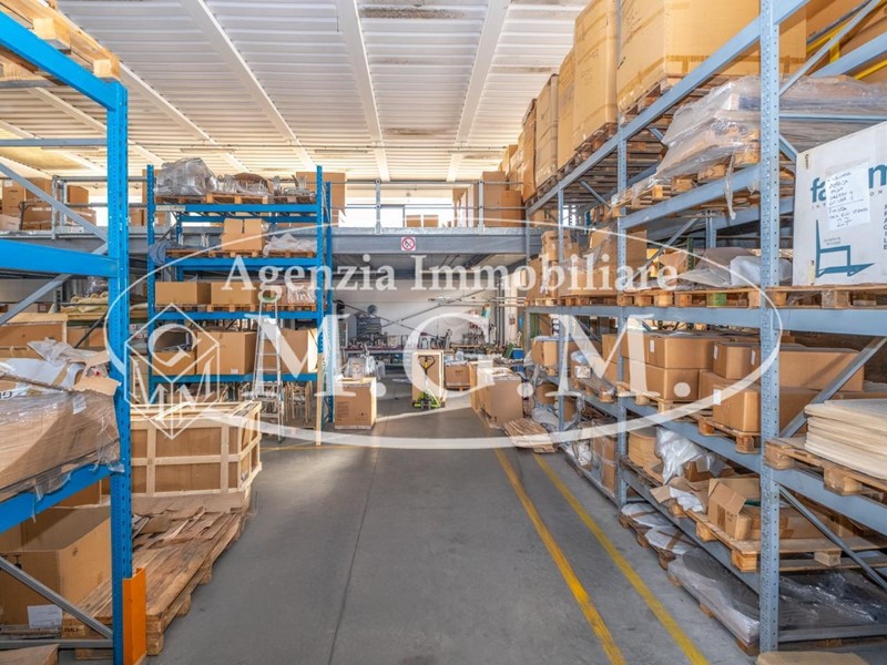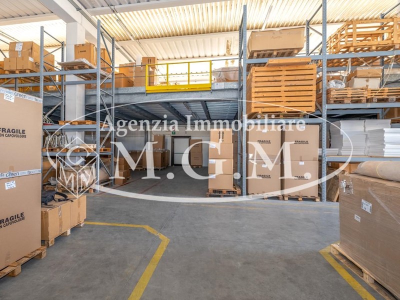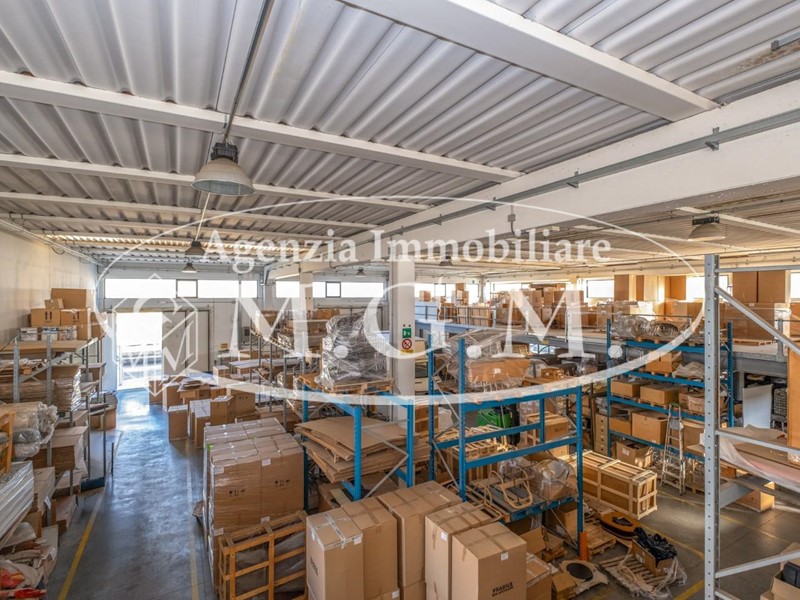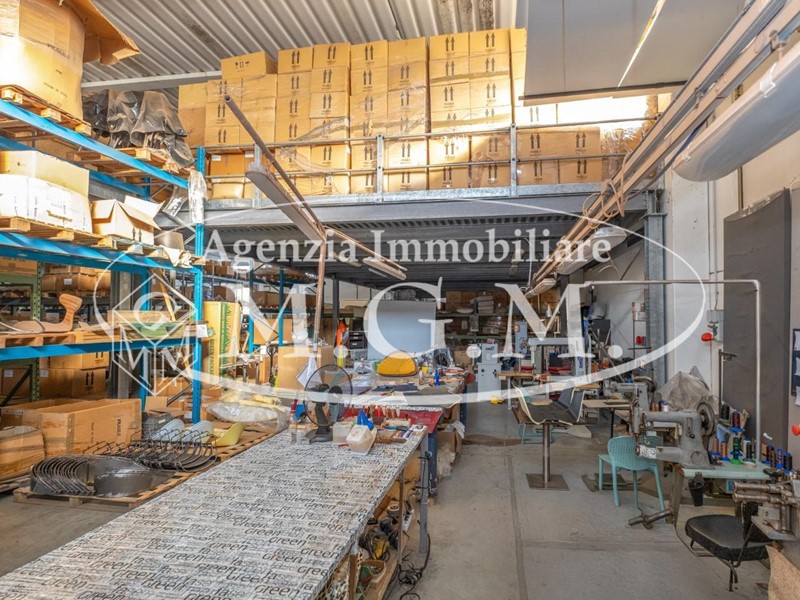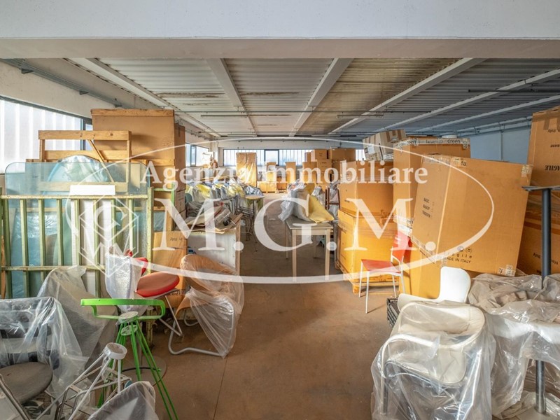 ampio locale ad uso laboratorio, quattro portoni carrabili, ufficio, servizi igienici, soppalco e scala di collegamento al piano superiore.