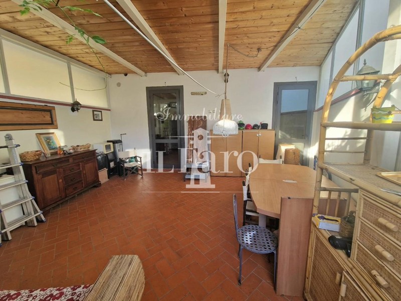 L'appartamento è situato al piano terreno di edificio BIFAMILIARE PRIVO DI SPESE CONDOMINIALI, ed è così composto: Entrando ci accoglie l'ampio ingresso che ci conduce ai vari ambienti e nell'ordine troviamo le tre camere da letto di cui due singole e una matrimoniale con bagno finestrato in camera, proseguendo troviamo il ripostiglio, un'ulteriore bagno con aspirazione forzata e per finire la splendida zona giorno-cottura OPEN-SPACE con camino. Nella parte tergale con accesso diretto dalla zona giorno troviamo una RESEDE ABITABILE pavimentata e coperta da tettoia sulla quale insistono due annessi in muratura attualmente utilizzati come ripostiglio/lavanderia. Sempre nella parte tergale attiguo alla resede pavimentata troviamo uno splendido GIARDINO di 60 mq. attrezzato con barbecue in muratura e casetta in legno utilizzata come rimessaggio attrezzi. Nella parte frontale recintata è presente una resede asfaltata dove poter parcheggiare due auto. L'appartamento si presenta in buone condizioni generali con aria condizionata in tutte le stanze e stufa a pellet nella zona giorno.