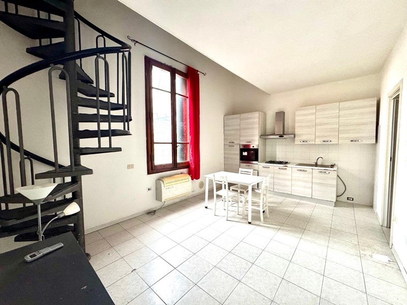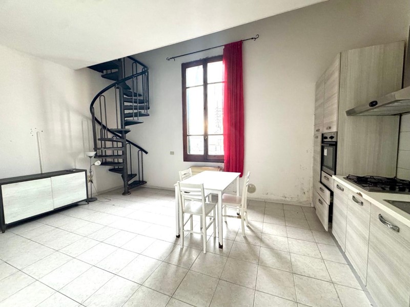 In elegante palazzotto a due passi da tutti i principali servizi, fra il centro e la stazione, appartamento di recente ristrutturazione, posto la secondo ed ultimo piano composto da zona giorno con angolo cottura con comodo ripostiglio ad uso dispensa, scala a chiocciola che porta ad un soppalco abitabile dove si trova la camera ed il bagno con box doccia.