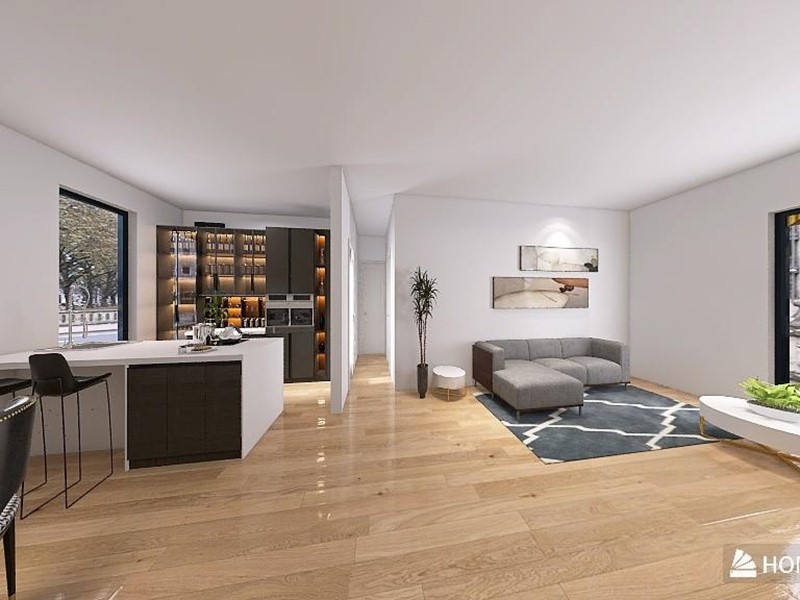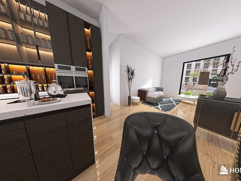 L’immobile si apre su un ingresso con disimpegno che conduce alla luminosa zona giorno composta da un’ampia sala con affaccio su una terrazza vivibile di circa 10 mq, ideale per pranzi e cene all’aperto, e da una cucina abitabile con adiacente balcone di servizio verandato, attualmente adibito ad uso lavanderia.