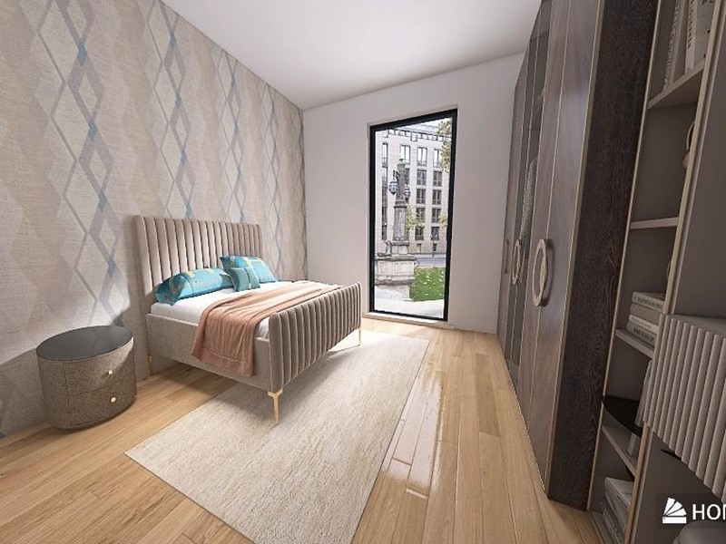 La zona notte, ben separata, offre due camere matrimoniali generose nelle dimensioni, di cui una con bagno en suite e balcone privato, oltre a un secondo bagno finestrato con box doccia.