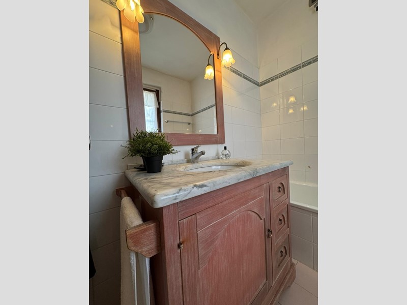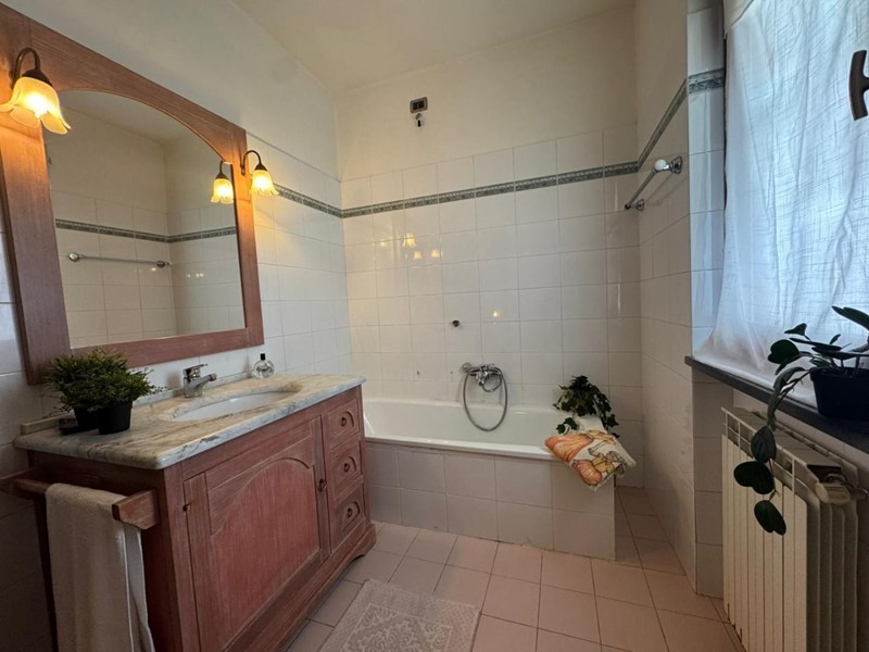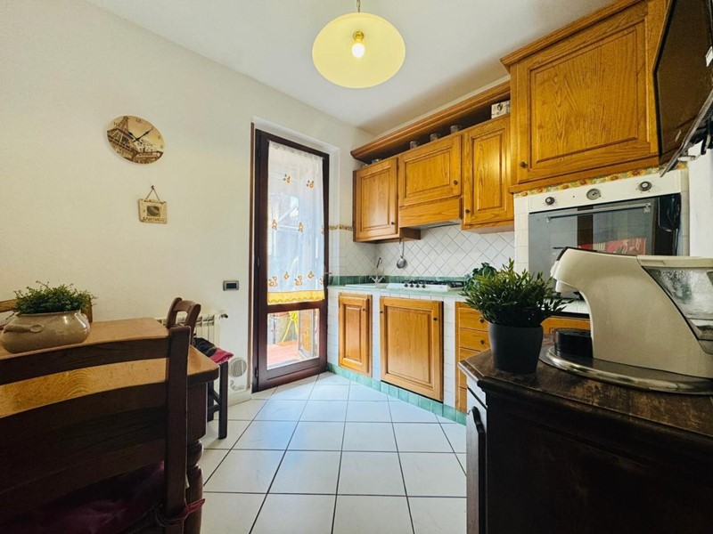 Al piano terra si sviluppa la zona giorno composta da una luminosa sala, una cucina semi-abitabile, entrambe con accesso diretto al curato giardino eD un comodo bagno di servizio recentemente ristrutturato, completo di doccia e finestra.