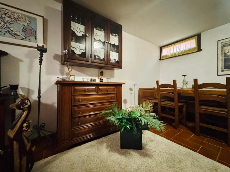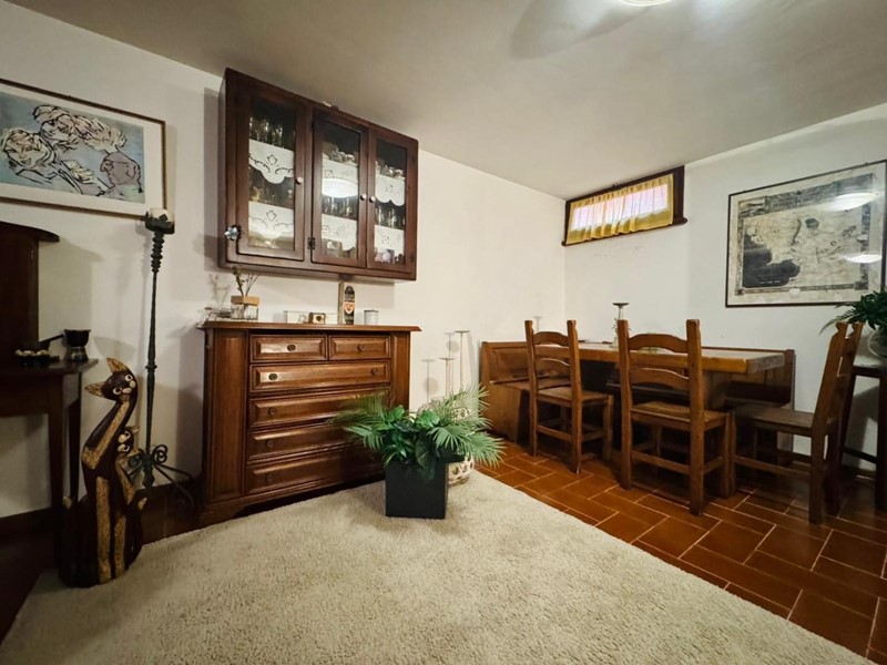 Al piano seminterrato troviamo una caratteristica taverna, dove è stata realizzata una seconda zona living con un’ampia sala arricchita da un suggestivo camino in pietra ed un forno a legna, oltre a una cucina perfettamente attrezzata, perfetta per conviviali momenti in famiglia o con amici.