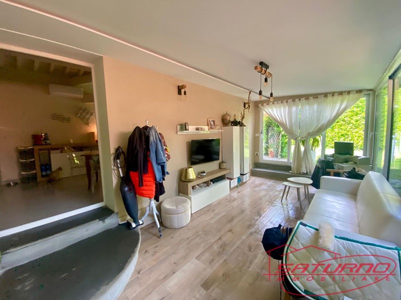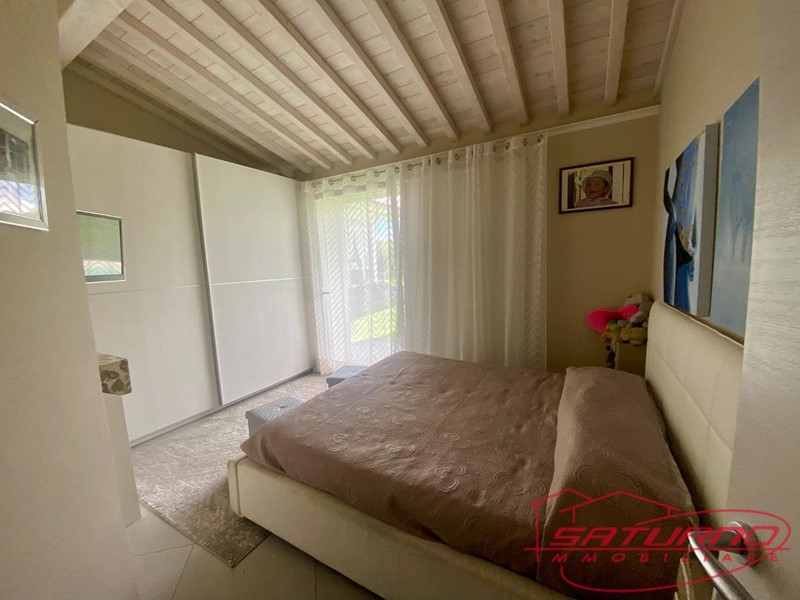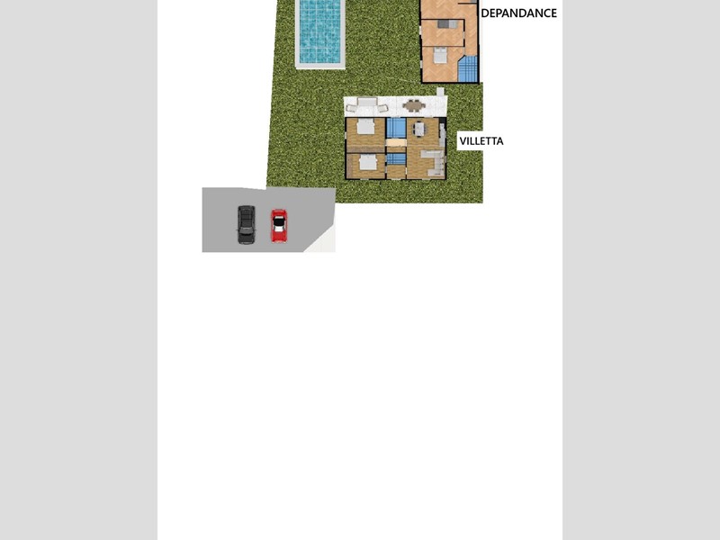Nel giardino, affacciata anch' essa sulla piscina , troviamo la depandance utizzata di fatto come una seconda abitazione vera e propria, sviluppata per circa 90 mq anch'essa al solo piano terra, con tetto a vista in legno lamellare sbiancato, e si compone di ingresso/soggiorno con angolo cottura da cui scendendo due gradini troviamo una graziosa sala tv con ampie vetrate verso la piscina, poi troviamo il disimpegno notte, con cameretta, camera matrimoniale e bagno.Il tutto ristrutturato comppletamente solo 5 anni fa.Dotata di riscaldamento a pavimento a gas metano, aria condizionata, infissi in legno con doppi vetri